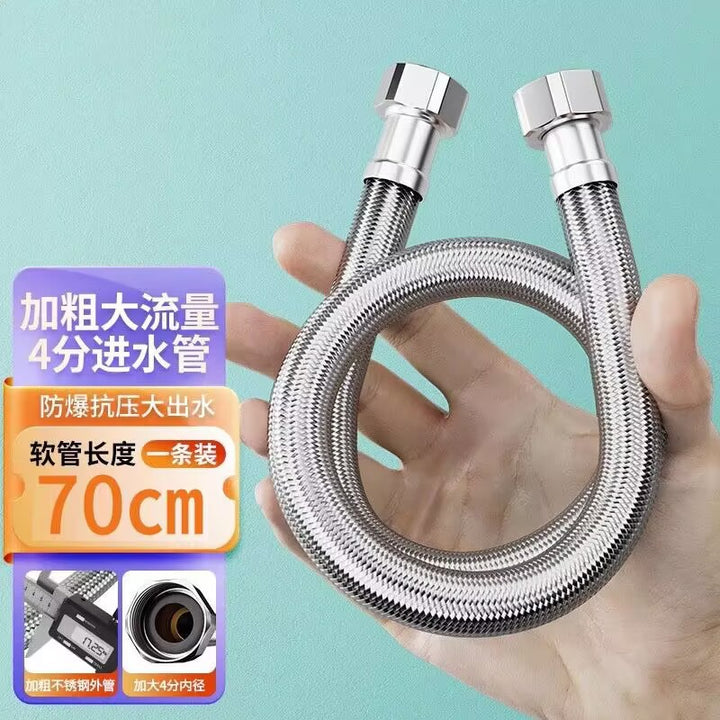 Increase the flow rate 304 stainless steel braided pipe 4 points metal explosion-proof soft connection water heater hot and cold water inlet pipe