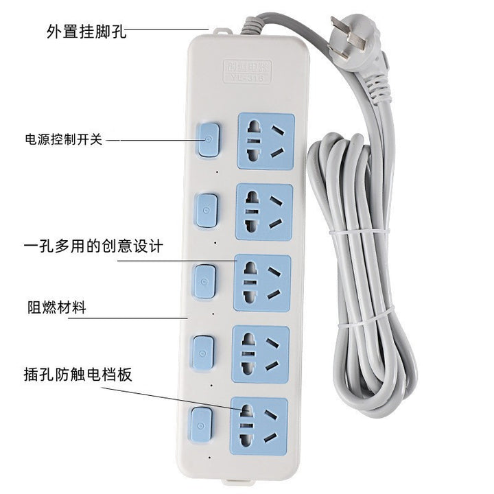 Independent multi-switch power supply, plug-in, multi-function home office computer plug-in board socket, high-power 3-meter plug-in board
