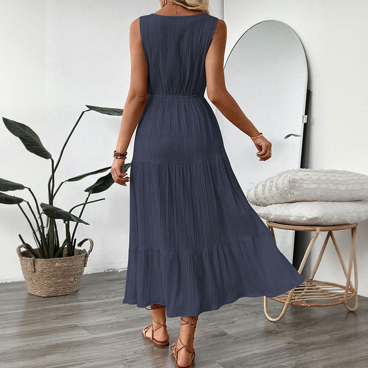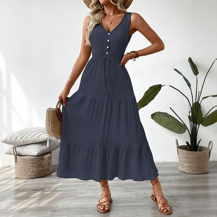 Independent Station 2025 New European Cross-border Simple Versatile Strap Sleeveless V-Neck Solid Color Women's Summer Dress