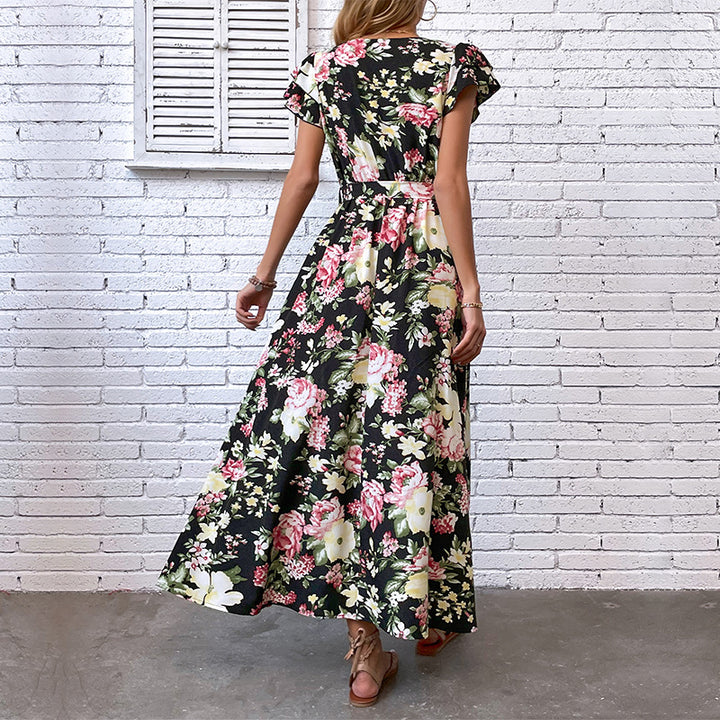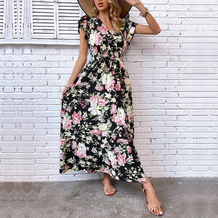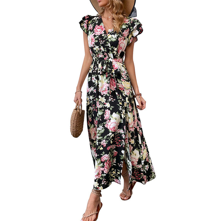 Independent Station Cross-border 2023 New European and American Women's Clothing Summer Vacation Medium and Long Split Floral Dress