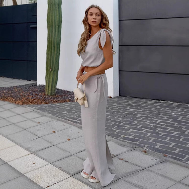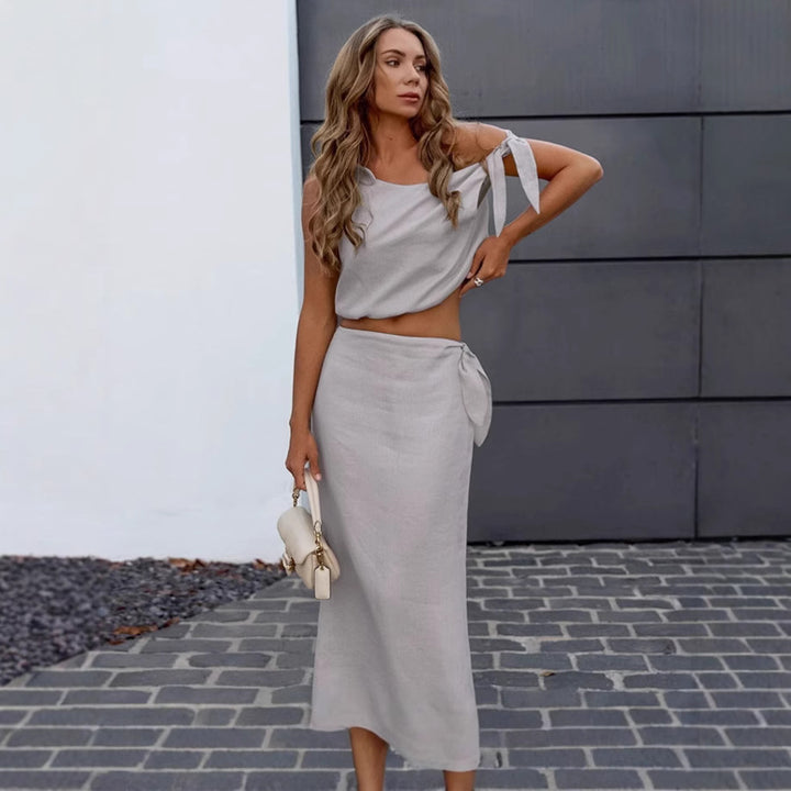 Independent Station Cross-border Casual Cotton and Linen Skirt Set Women's 2025 Summer Simple Grey Vest Long Skirt Two-piece Women's Clothing