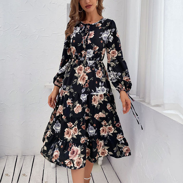 Independent Station Cross-border European and American fashion women's clothing temperament long-sleeved retro floral dress autumn