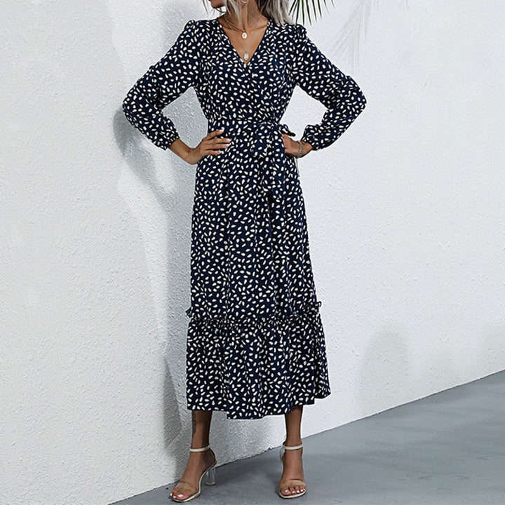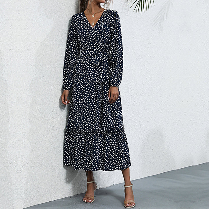 Independent Station Cross-border European and American women's clothing temperament long dress split green floral dress autumn and winter