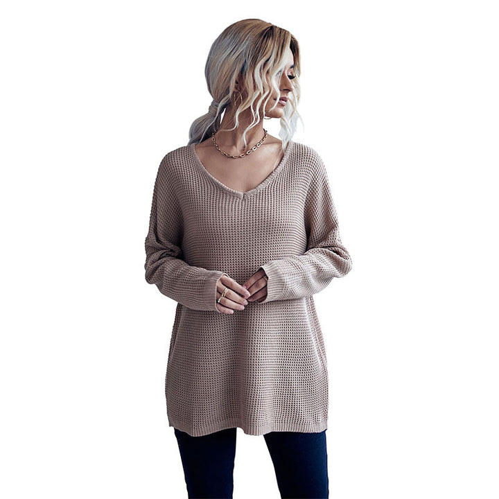 Independent Station Cross-border Foreign Trade Early Autumn European and American Casual Women's Clothing Loose Long Sleeve Solid Color V-Neck Thic...