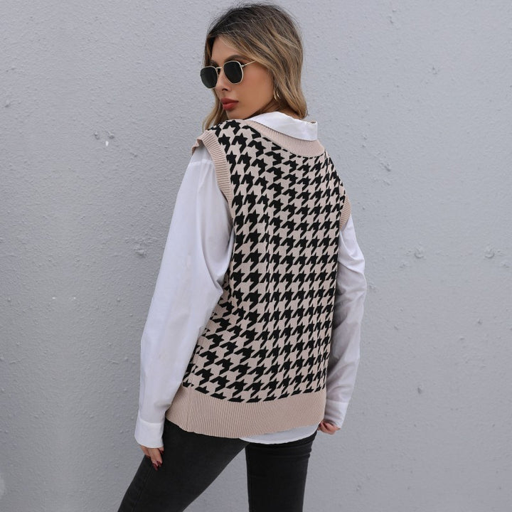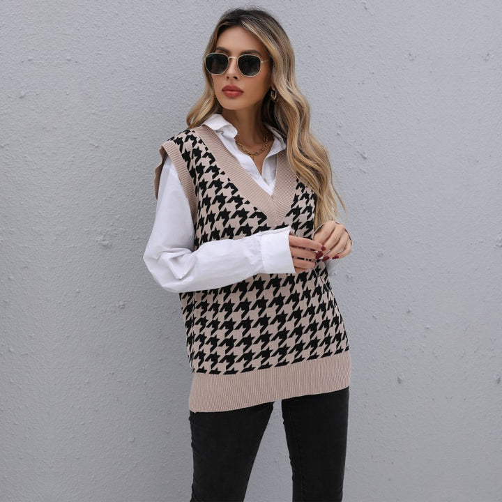 Independent Station Cross-border Foreign Trade Early Autumn European and American Fashion Women's Clothing Medium and Long Thousand Birds Sweater V...