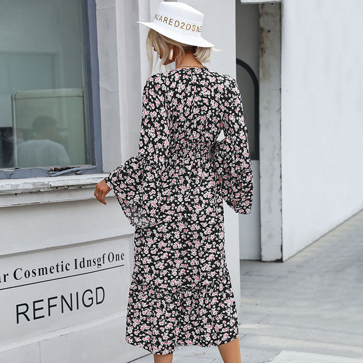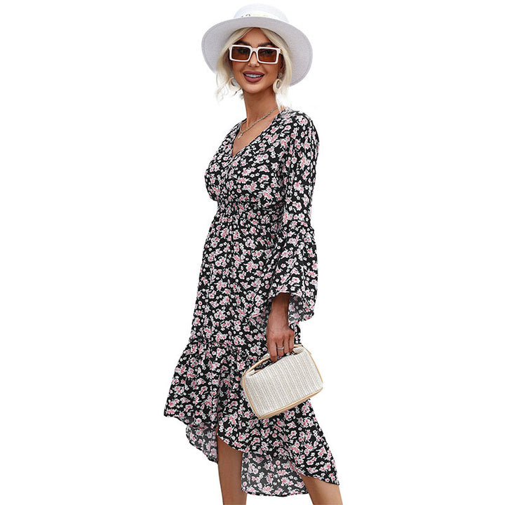 Independent Station Cross-border Foreign Trade European and American Fashion Women's Clothing Irregular Long Sleeve Floral Dress Autumn and Winter ...