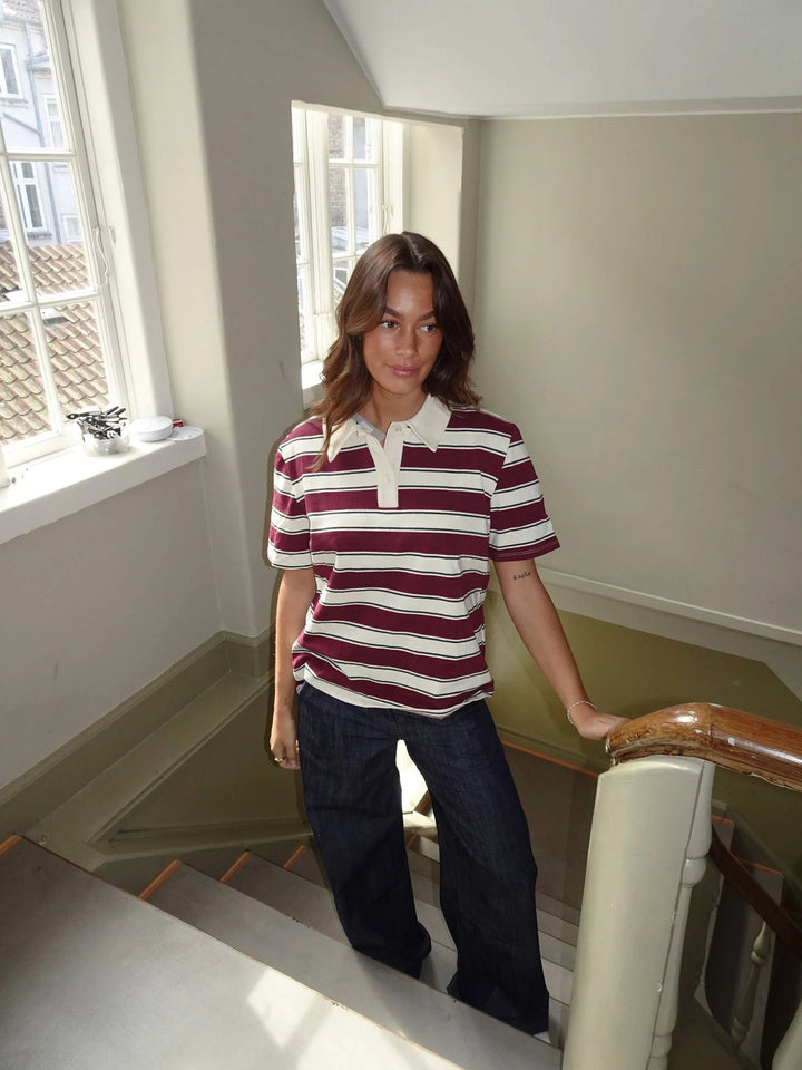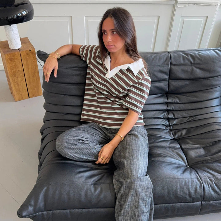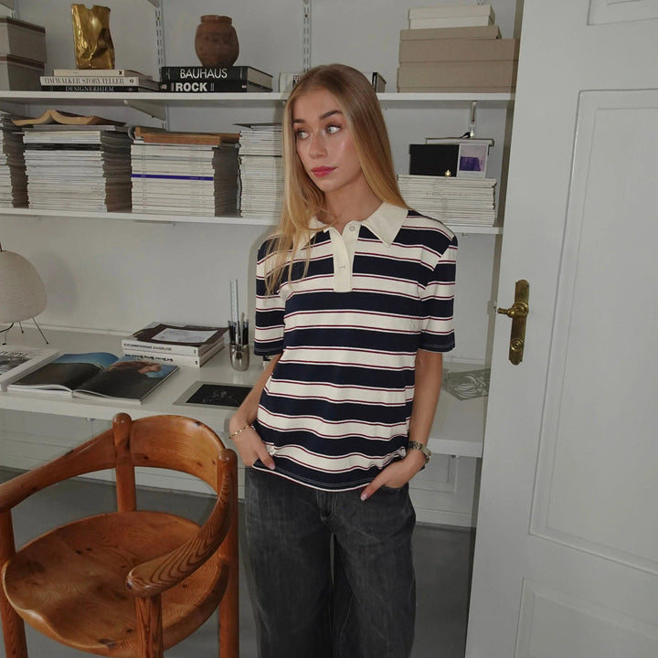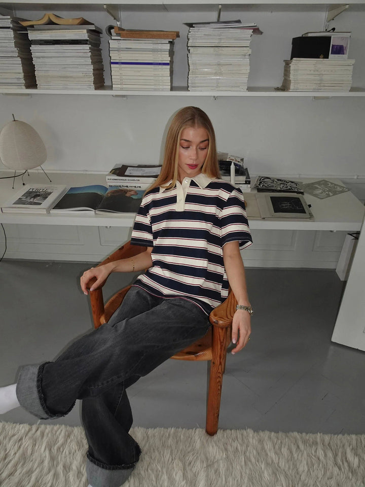 Independent Station Cross-border Striped POLO Short Sleeve T-Shirt Women's Summer 2025 New Fa...