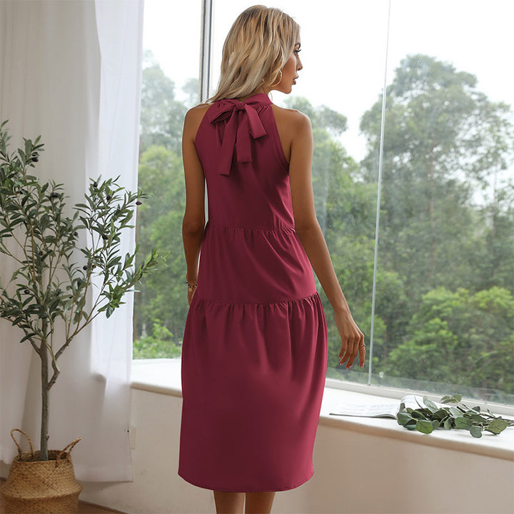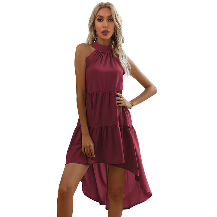 Independent Station Cross-border Women's Clothing Hot Sale Summer European and American Evening Dresses Solid Color Neck Waist Slim Dresses