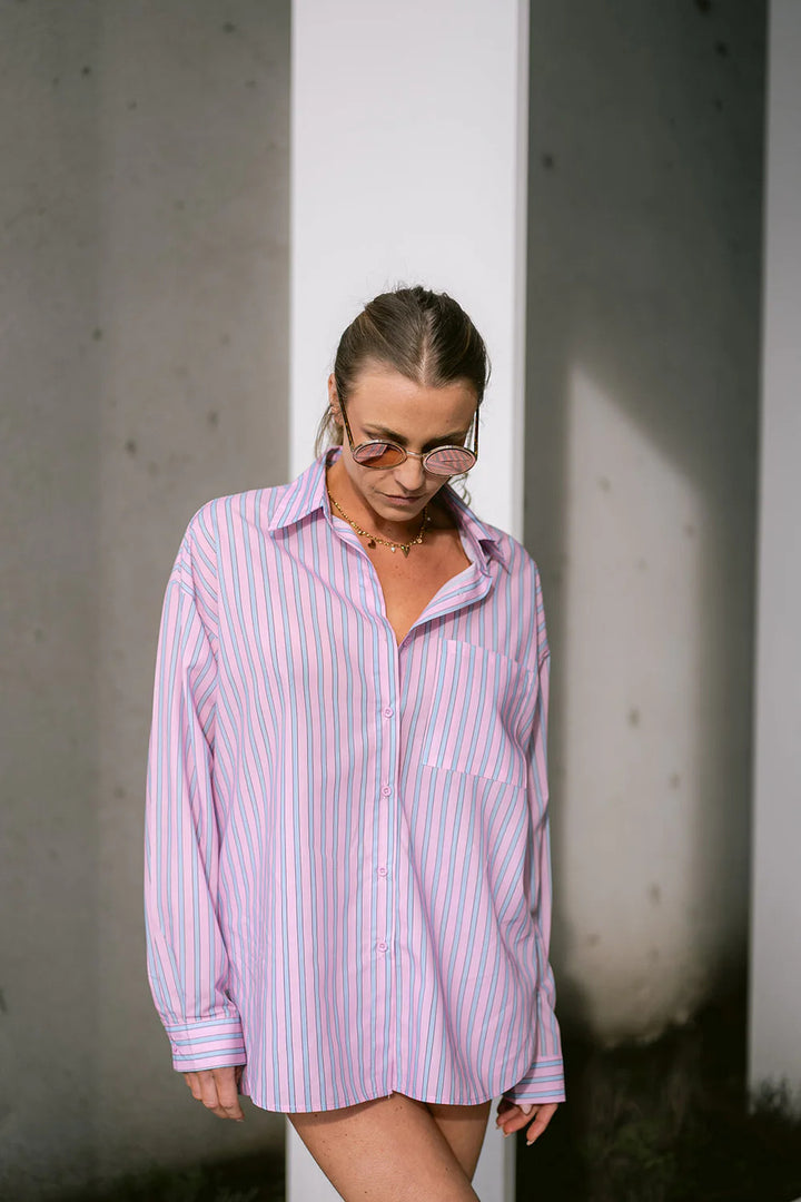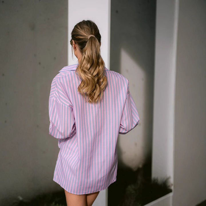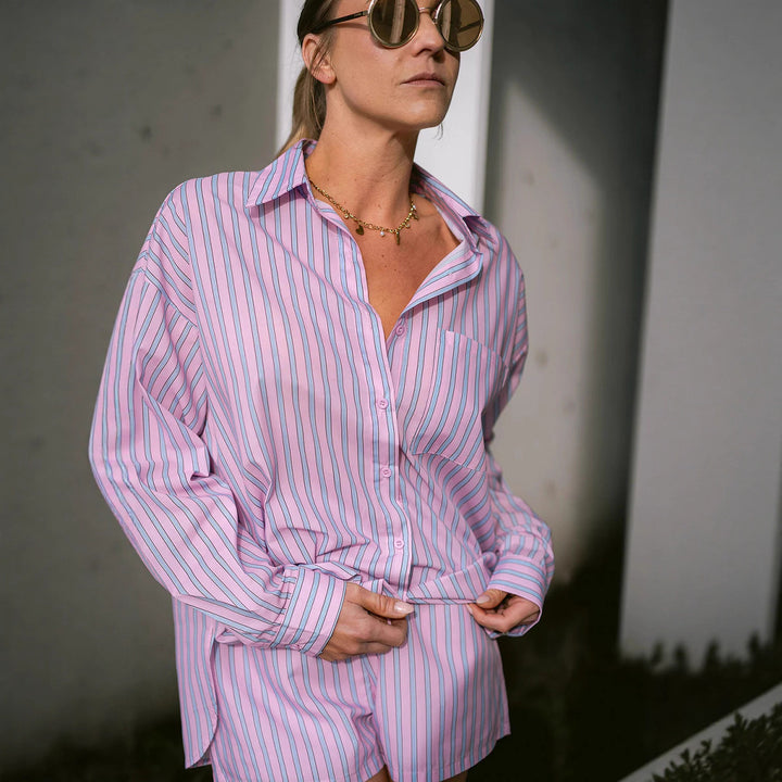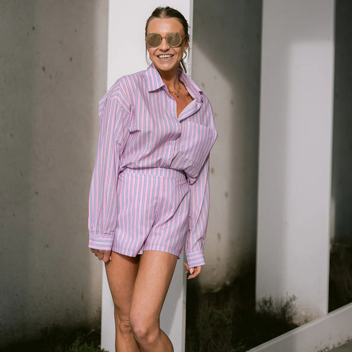 Independent Station European and American Street Casual Purple Striped Shirt Set Women's Autumn Design Women's Shorts Two-piece Set