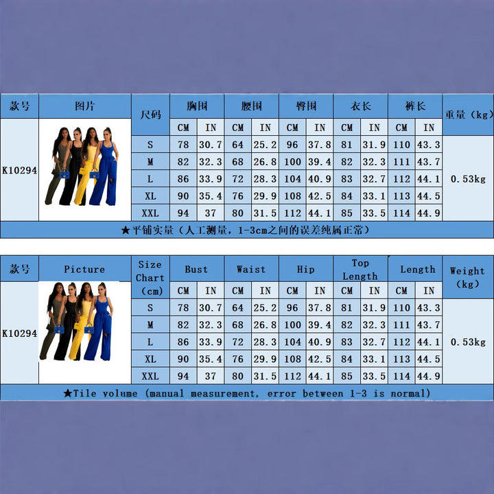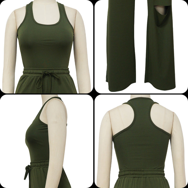 Independent Station, European and American women's clothing 2023 solid color U-neck onesie ripped wide-leg pants set new