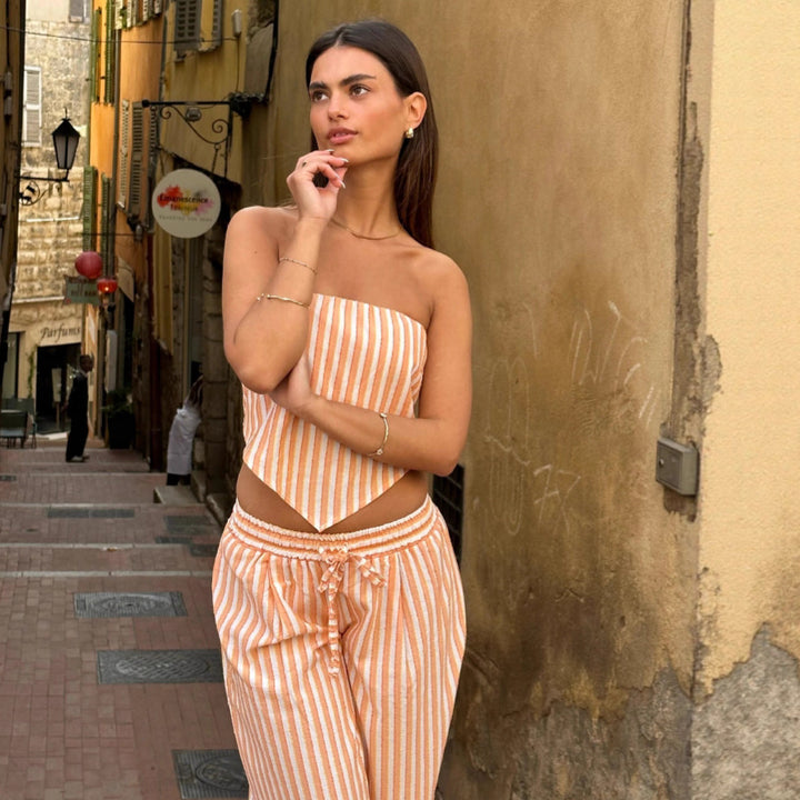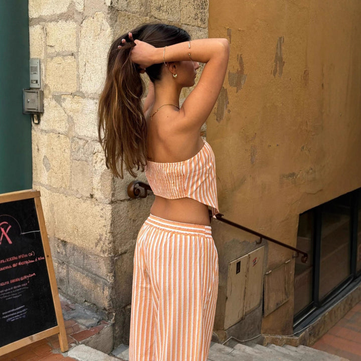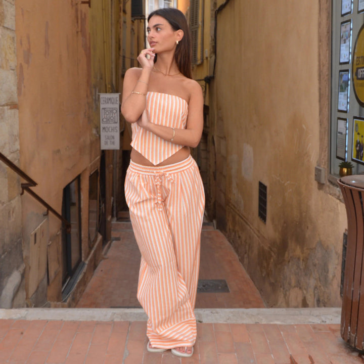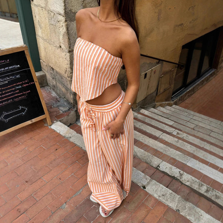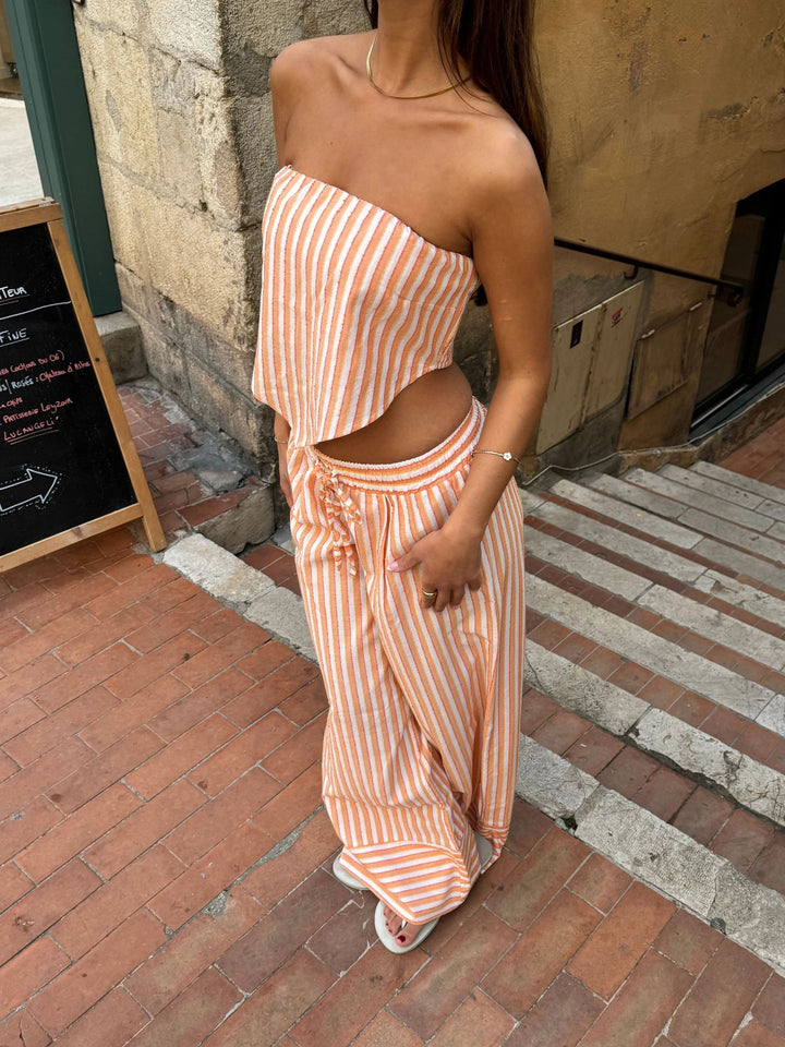 Independent Station European and American Women's Striped Printed Casual Pants Set Summer Tube Top Loose Pants Two-piece Set