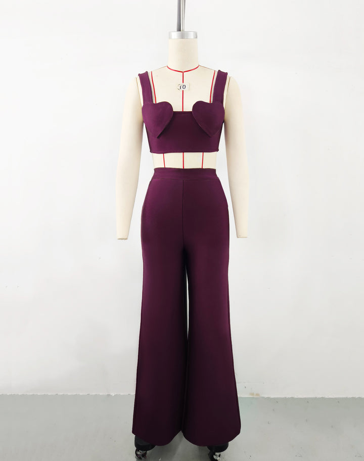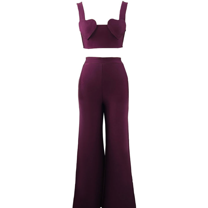 Independent Station European high-end women's clothing Spice Girls sweet and cool love bandage small top + high-waisted wide-leg pants set for women