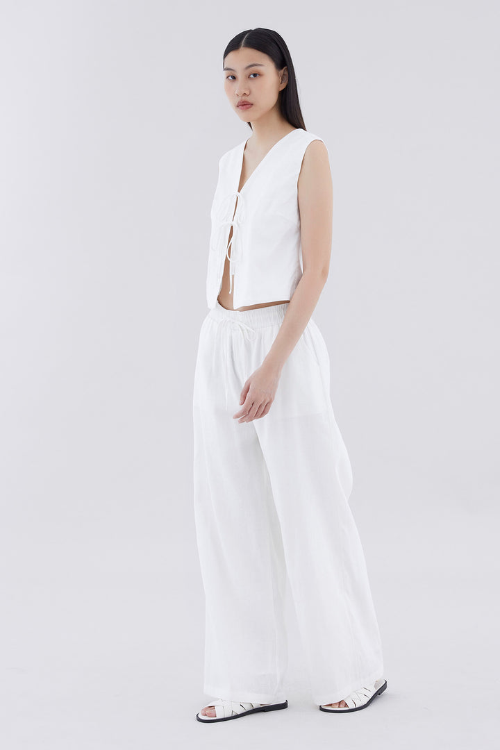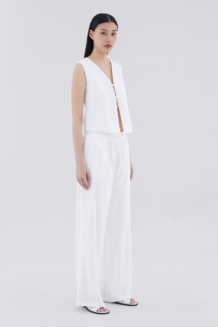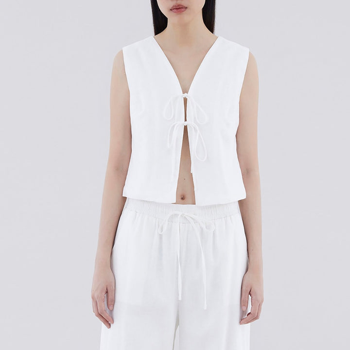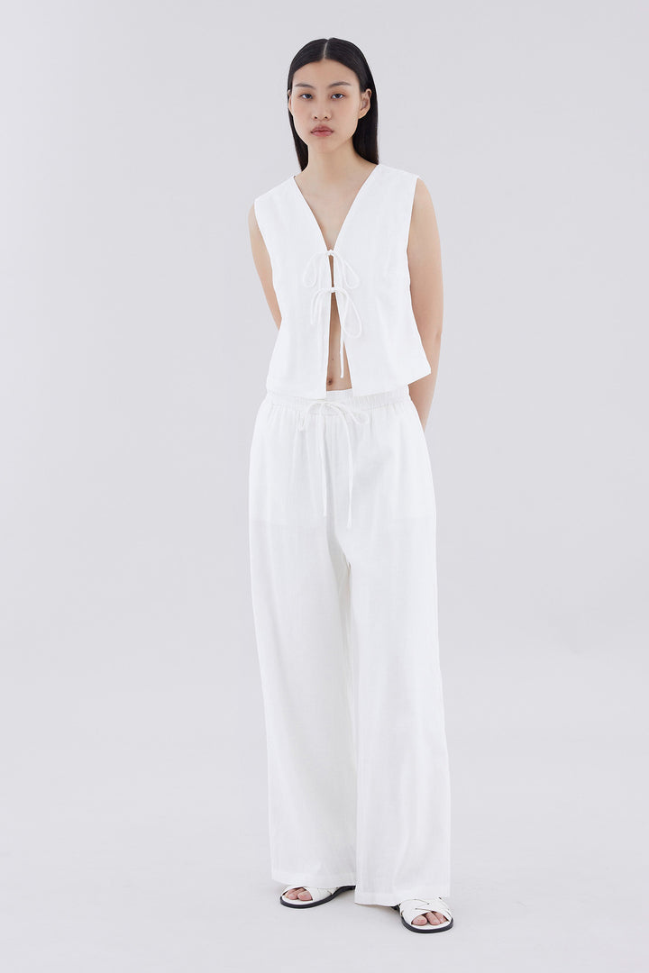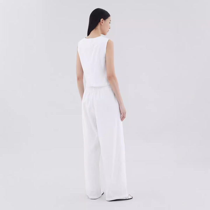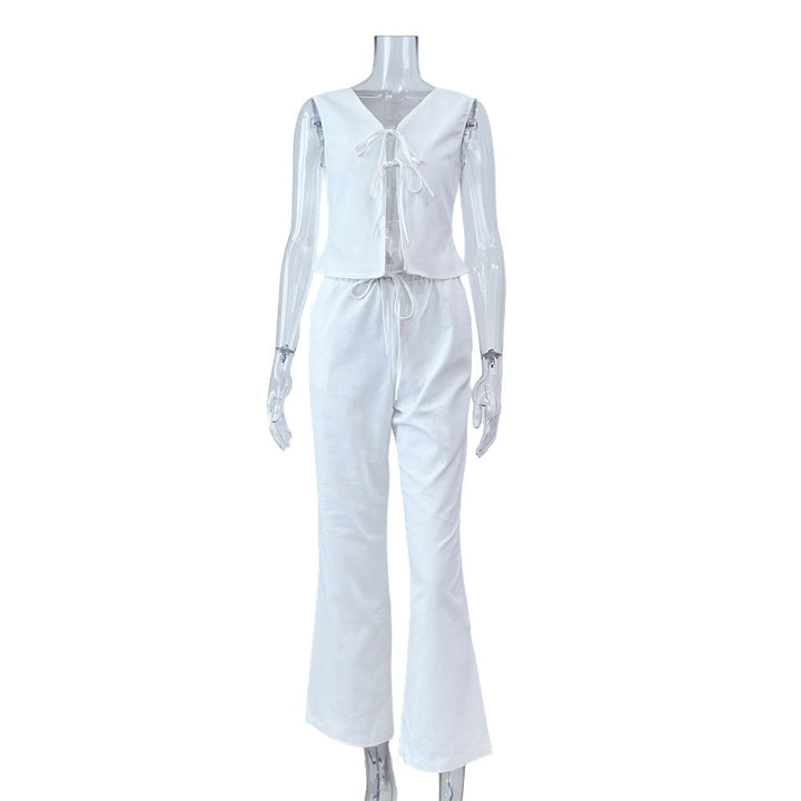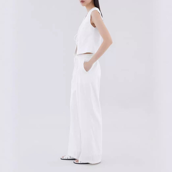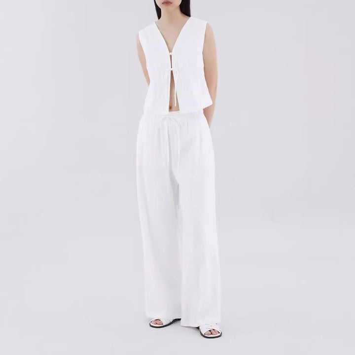Independent Station Explosion 2024 Summer and Autumn Casual Linen Set European and American Cardigan Strap-up Vest Straight Pants Two-piece Set Women