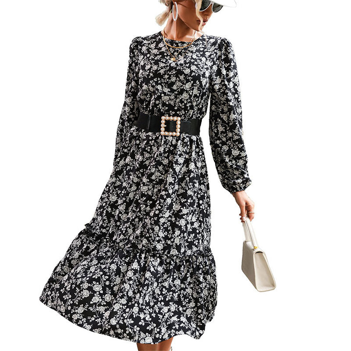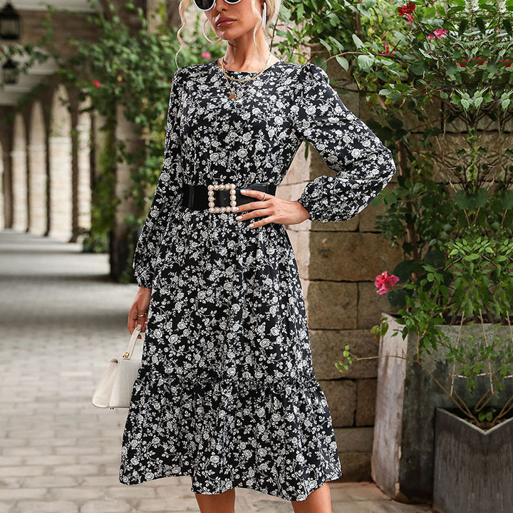 Independent Station Foreign Trade Cross-border European and American Women's Clothing New Product Temperament Long Sleeve Black Floral Dress Autumn...