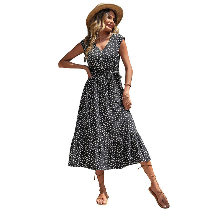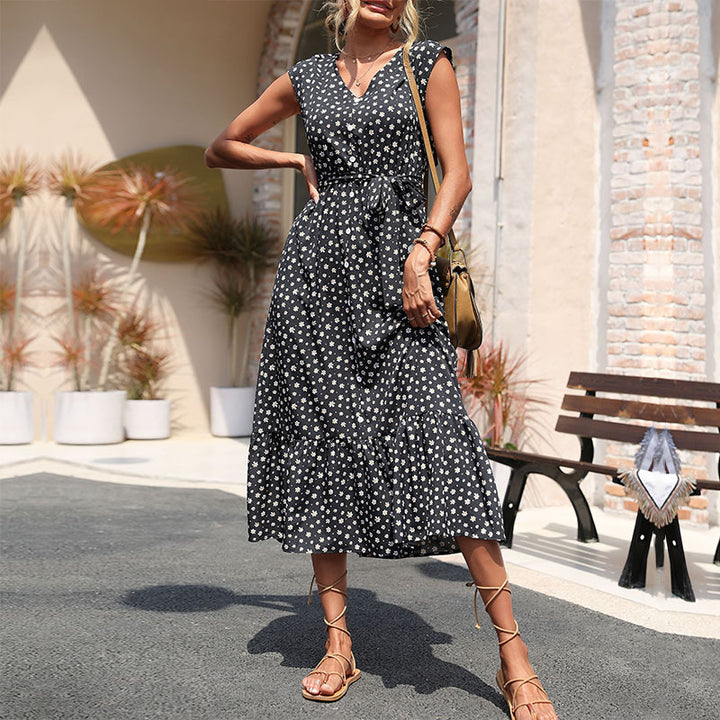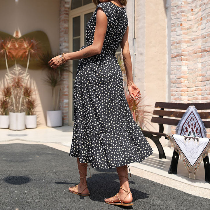 Independent Station Foreign Trade Summer 2023 New European and American Cross-border Women's Clothing Black Sleeveless Floral Dress