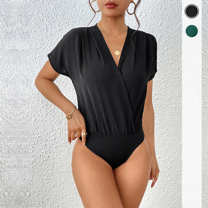 Independent Station hot-selling summer explosion versatile simple drape black short-sleeved V-neck onesie