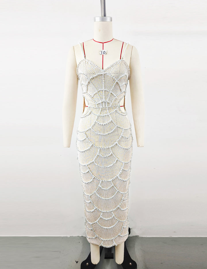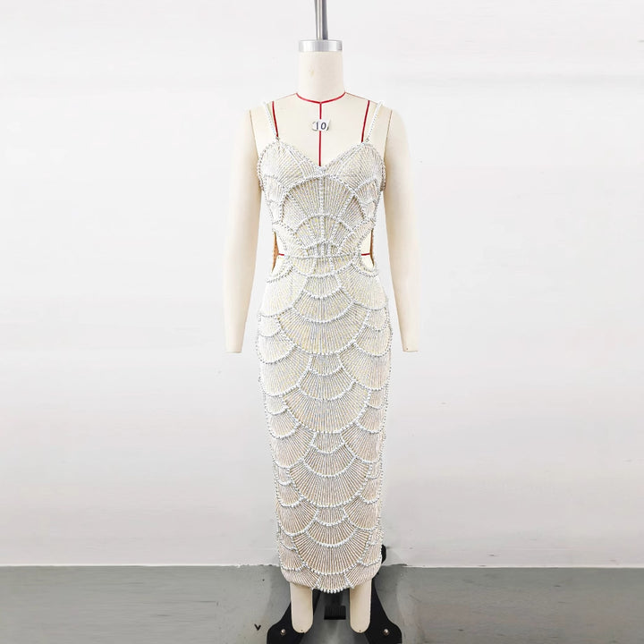 Independent Station Supply Women's White Pearl Sequin Dress Celebrity Birthday Party Dress Women's Premium Sense