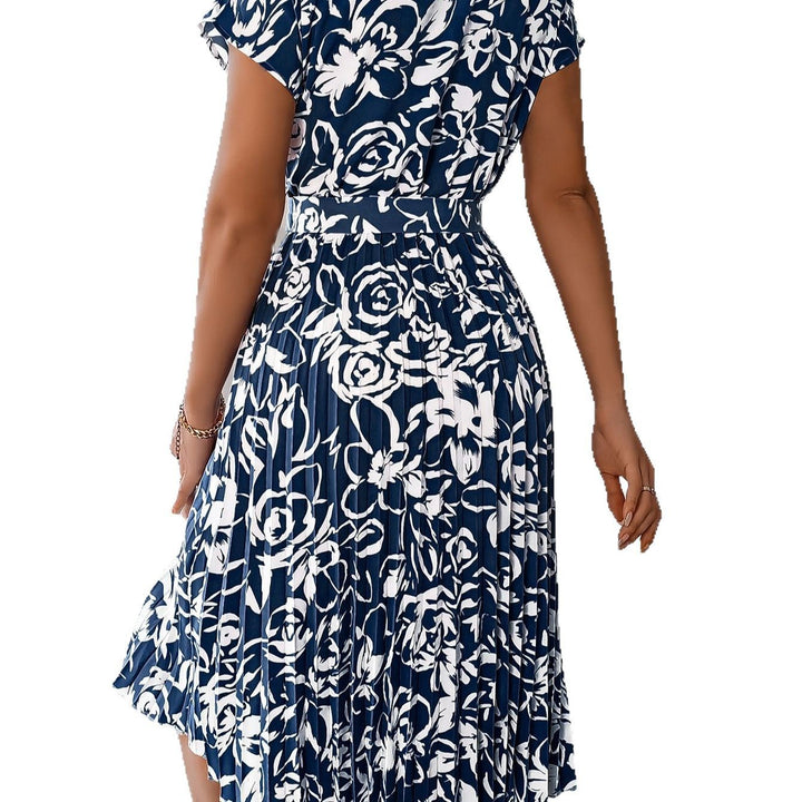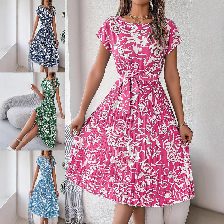 Independent station women's clothing 2025 spring and summer new casual short-sleeved floral lace-up dress pleated skirt