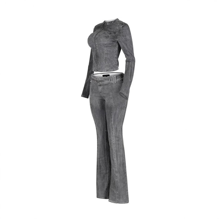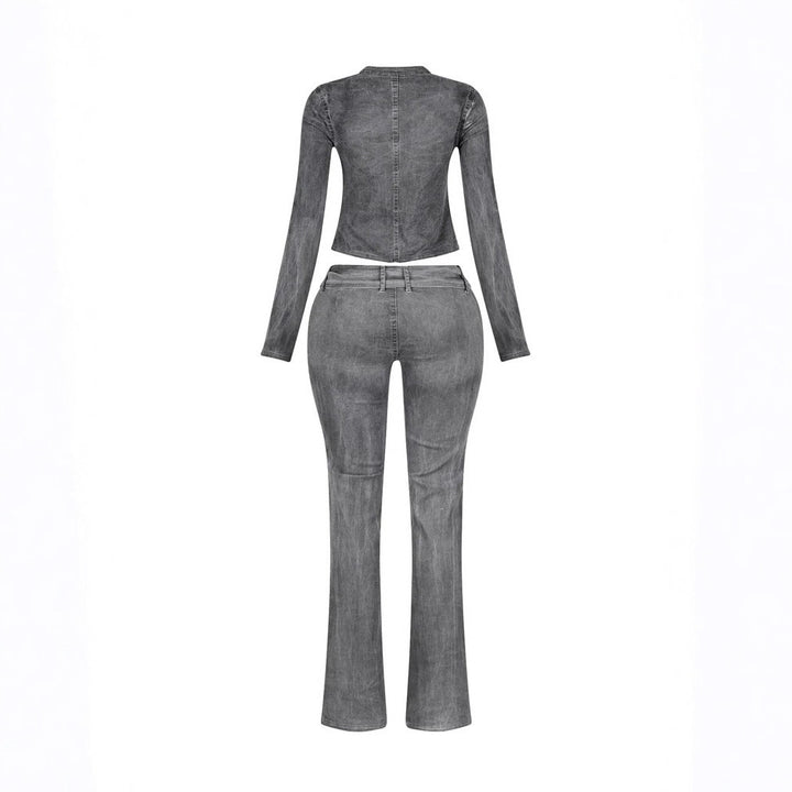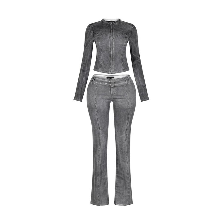 Independent Station's new denim jacket trousers set, European and American hot-selling long-sleeved elastic trousers belt set