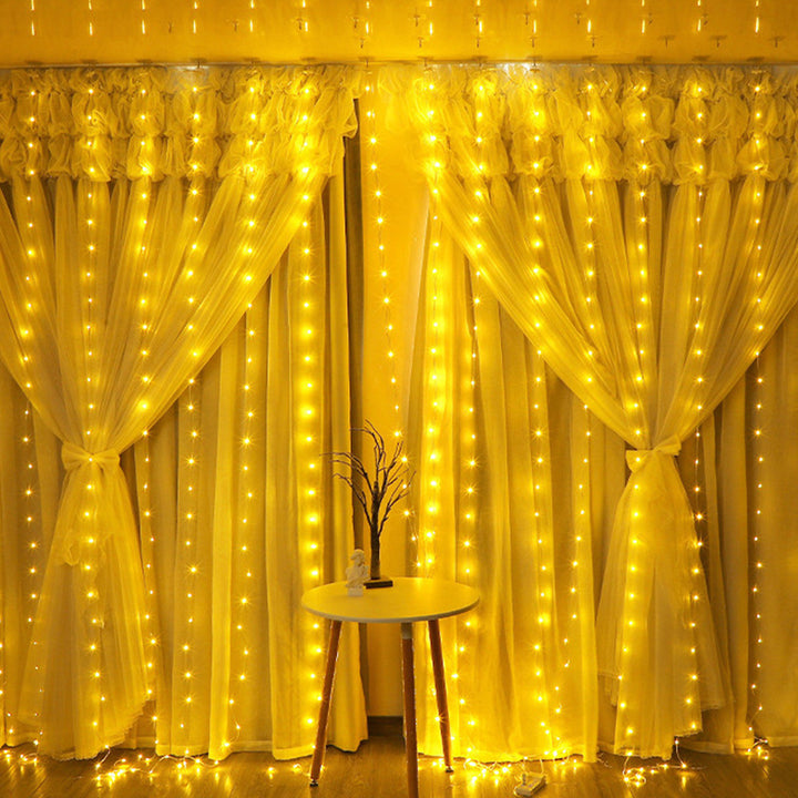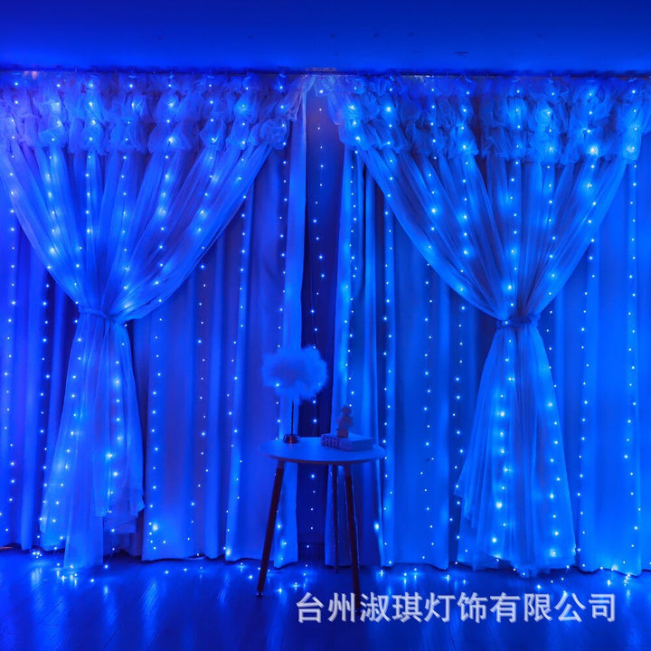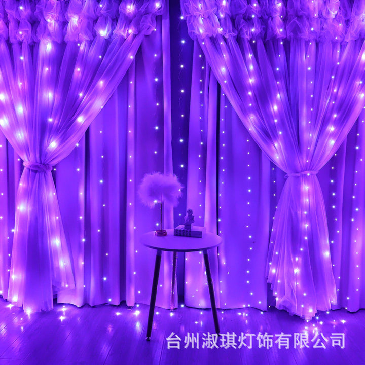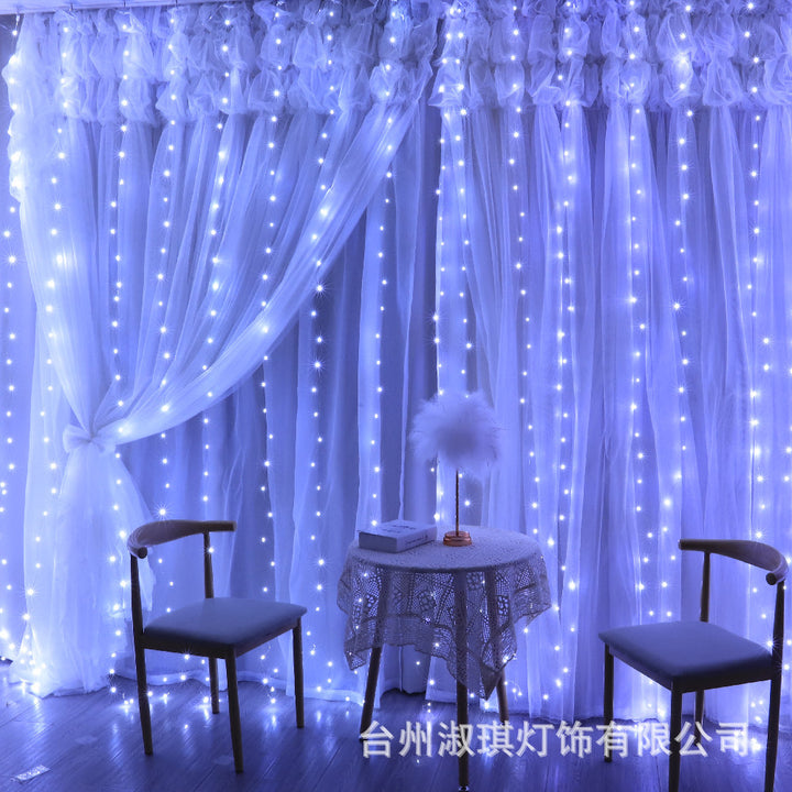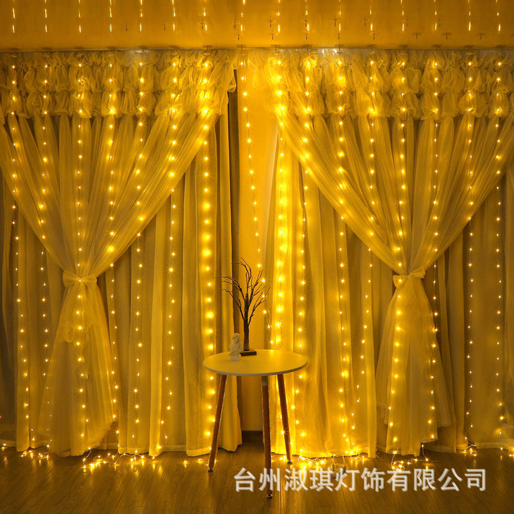 Indoor and outdoor hook led light string 3 * 3m background wall Christmas decoration curtain light USB eight-function copper wire lantern