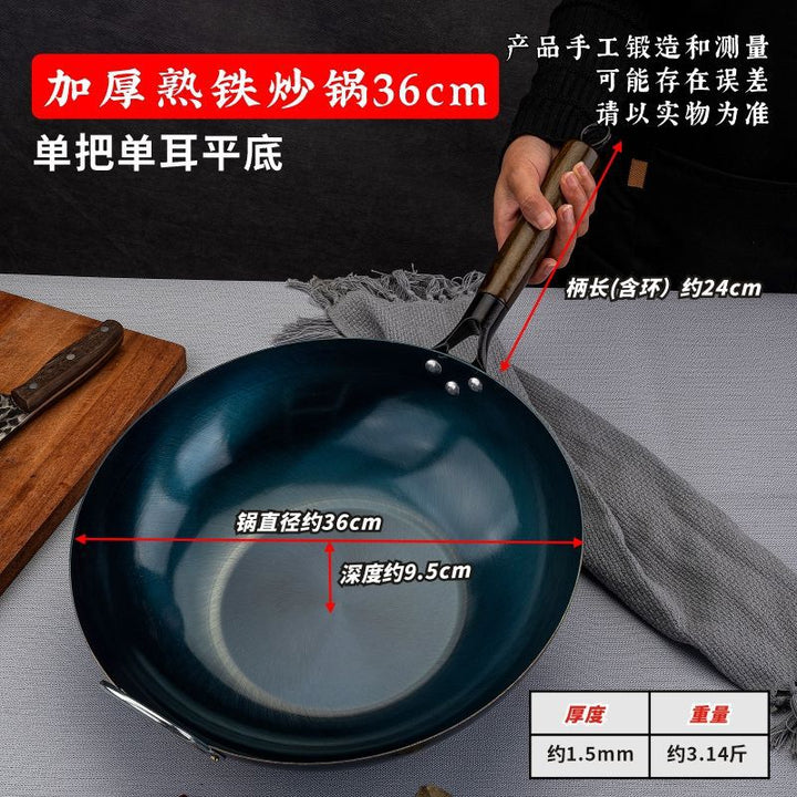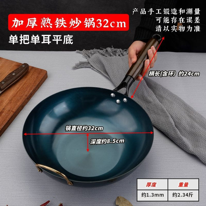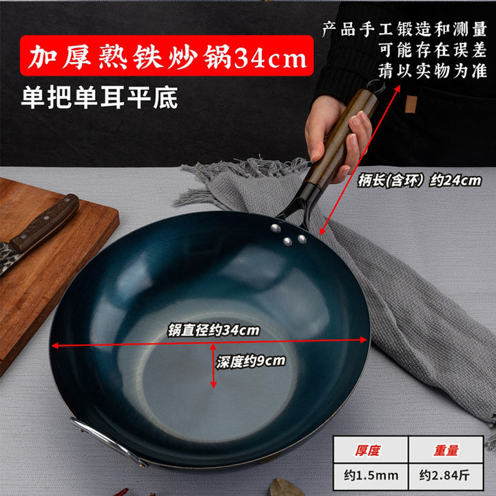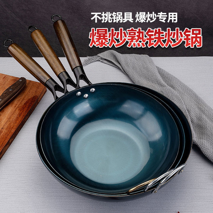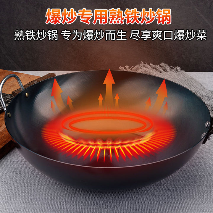 Induction cooker Wrought iron pot Boiled fine iron pot Pure iron pot Wooden handle wok Househ...