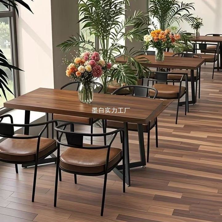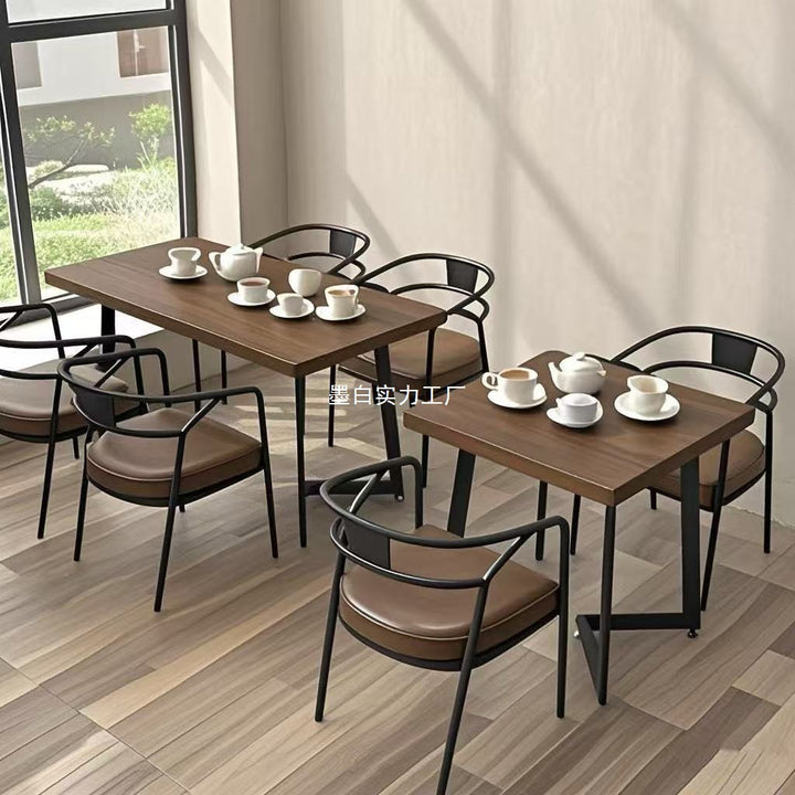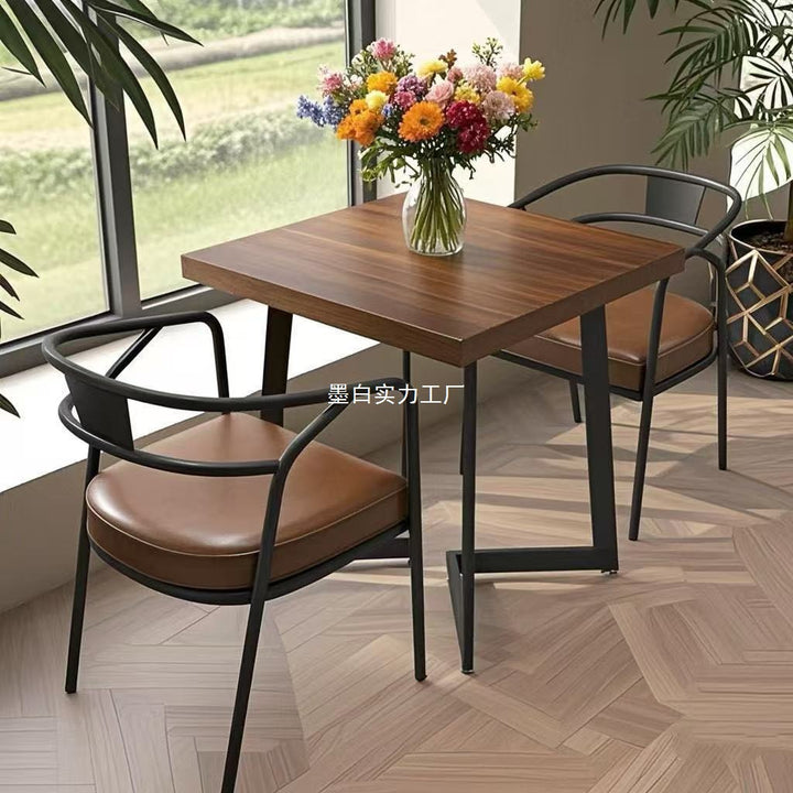 Industrial style cafe solid wood square table American restaurant Bistro wrought iron dining table and chair commercial negotiation table and chair...