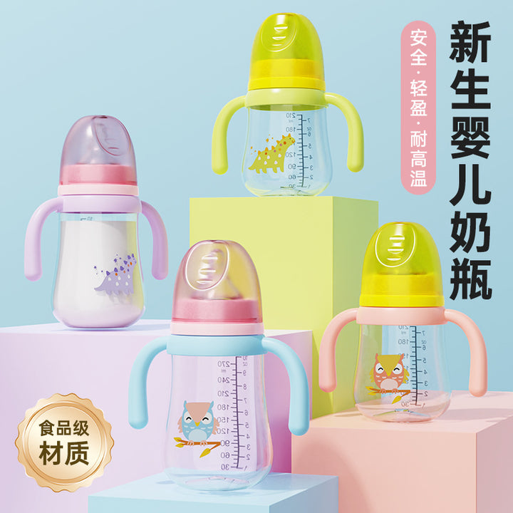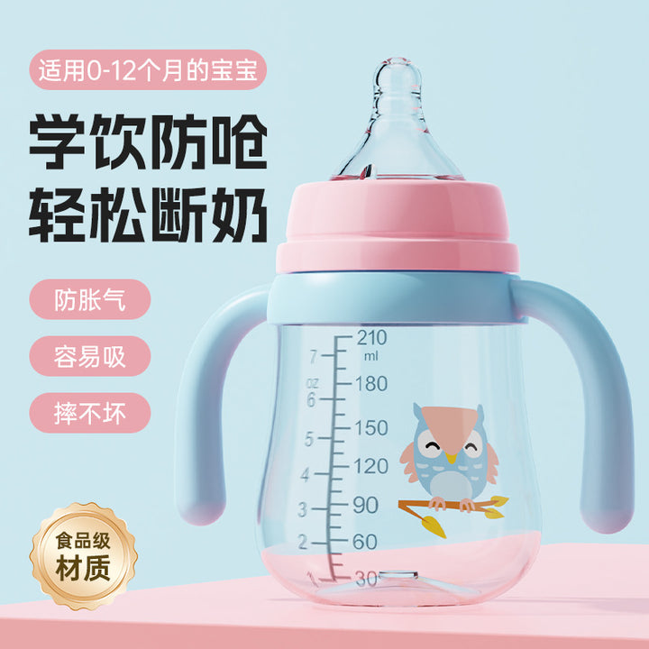 Infant wide mouth pacifier 210/270ml big belly series PP bottle with handle No straw baby bottle