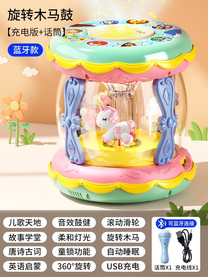 Infants and toddlers carousel hand drum baby early education puzzle lighting music drum toys children wholesale gift