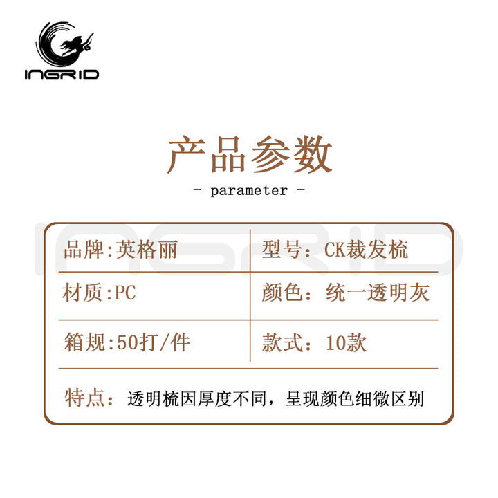 Ingrid ultra-thin transparent gray comb PC pointed tail comb flat hair oily hair modeling comb hair salon distinguishing comb hair comb