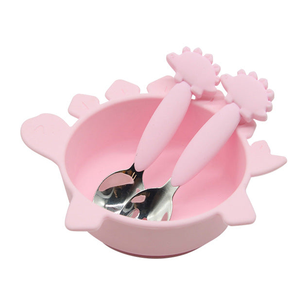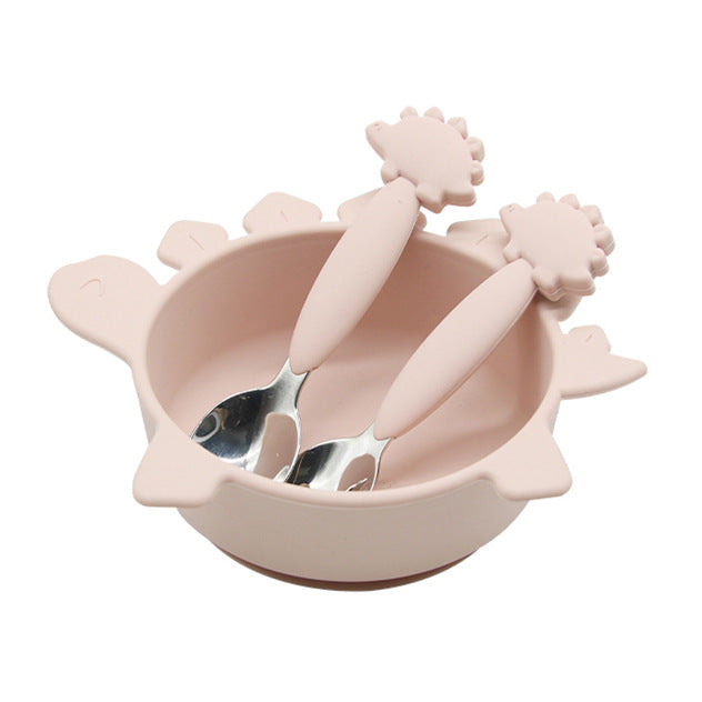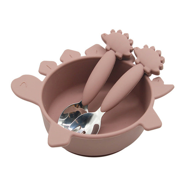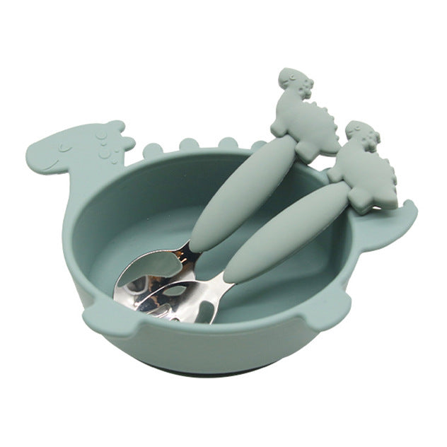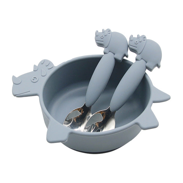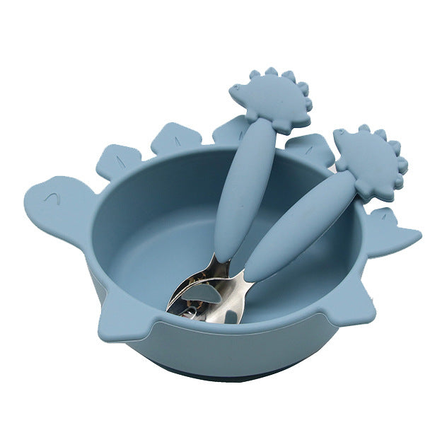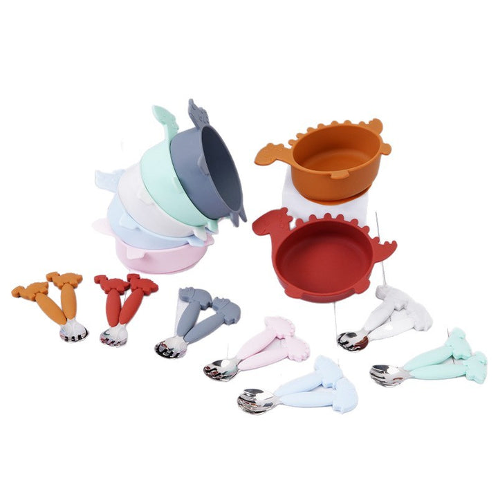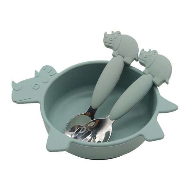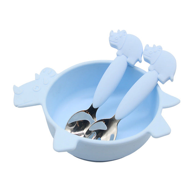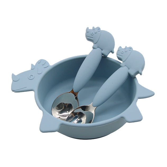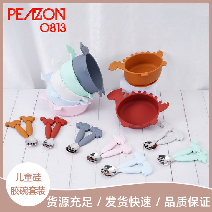 ins baby silicone complementary food bowl, baby feeding training silicone bowl, including fork and spoon anti-drop suction cup silicone plate