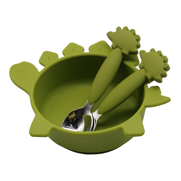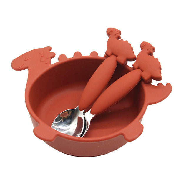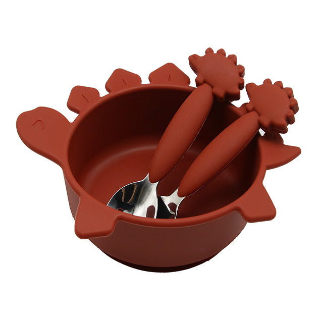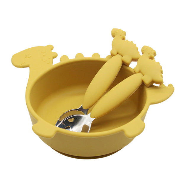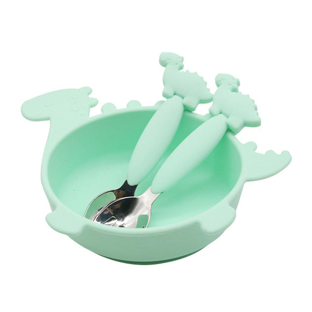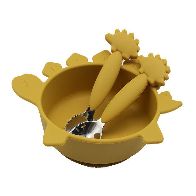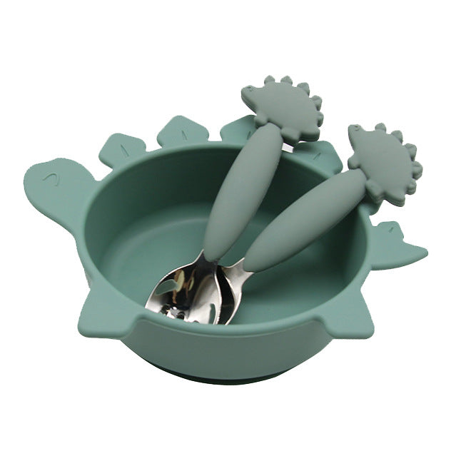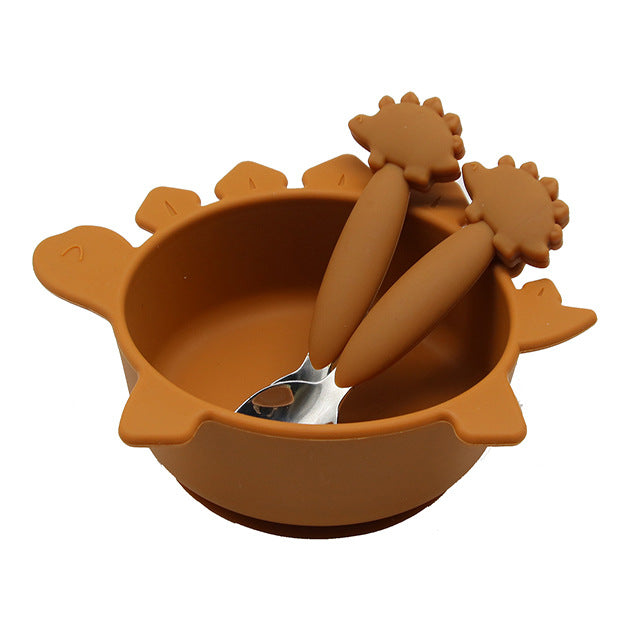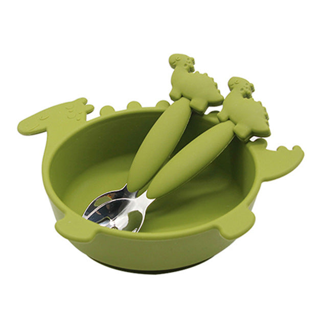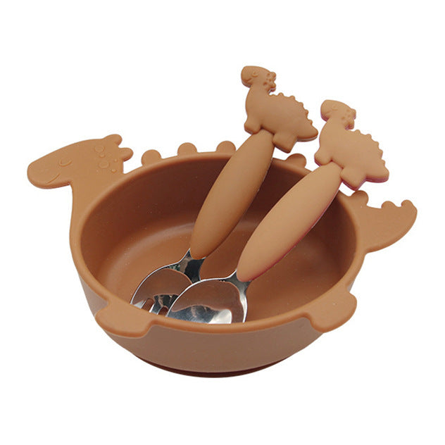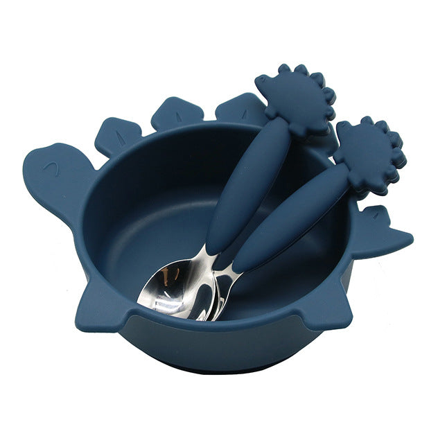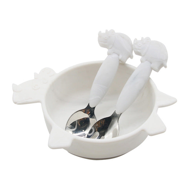 ins baby silicone complementary food bowl, baby feeding training silicone bowl, including fork and spoon anti-drop suction cup silicone plate