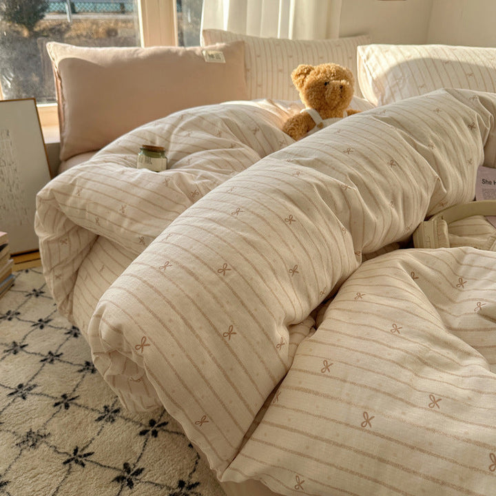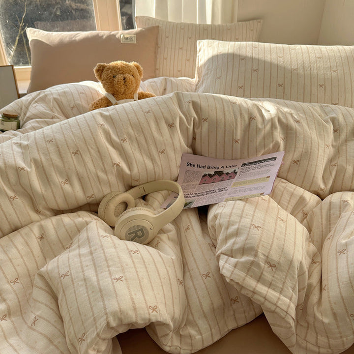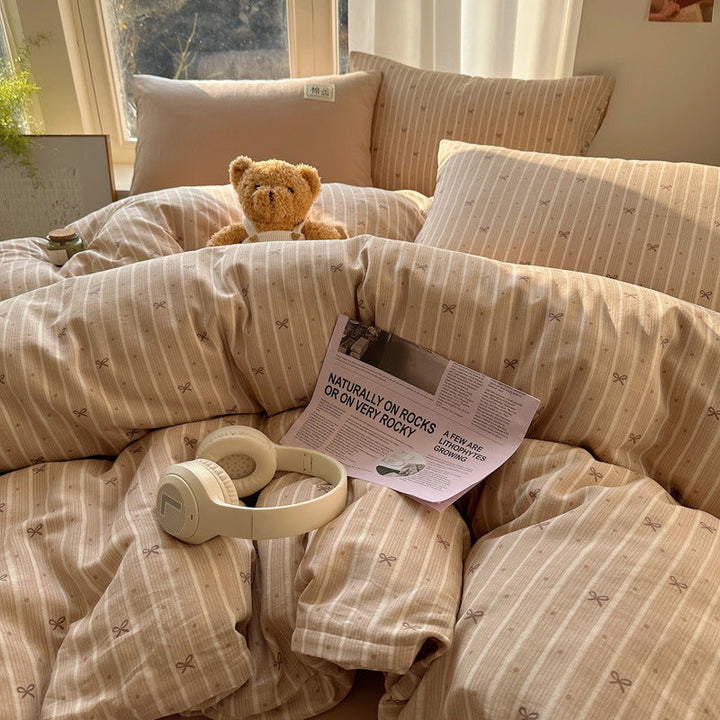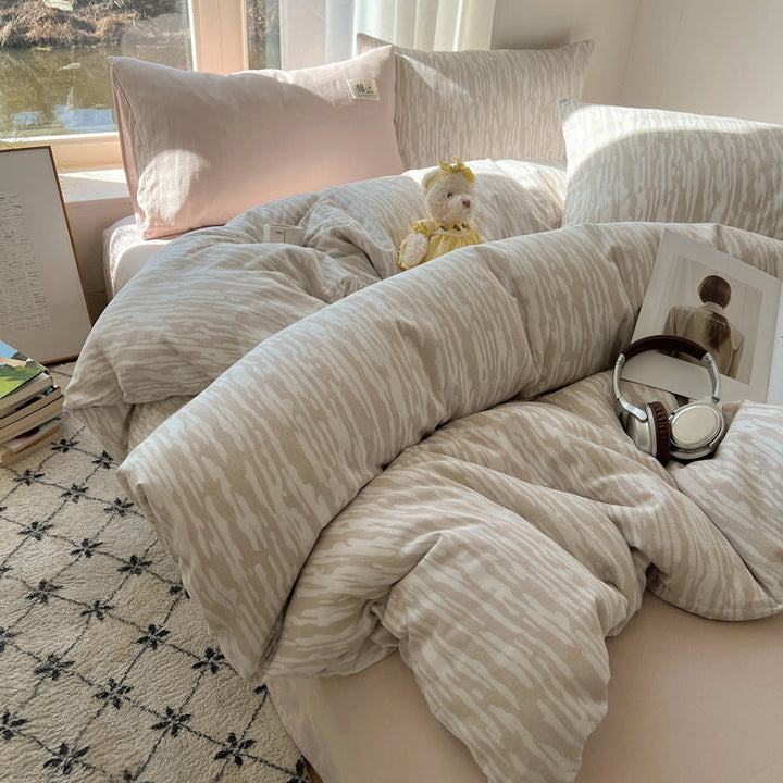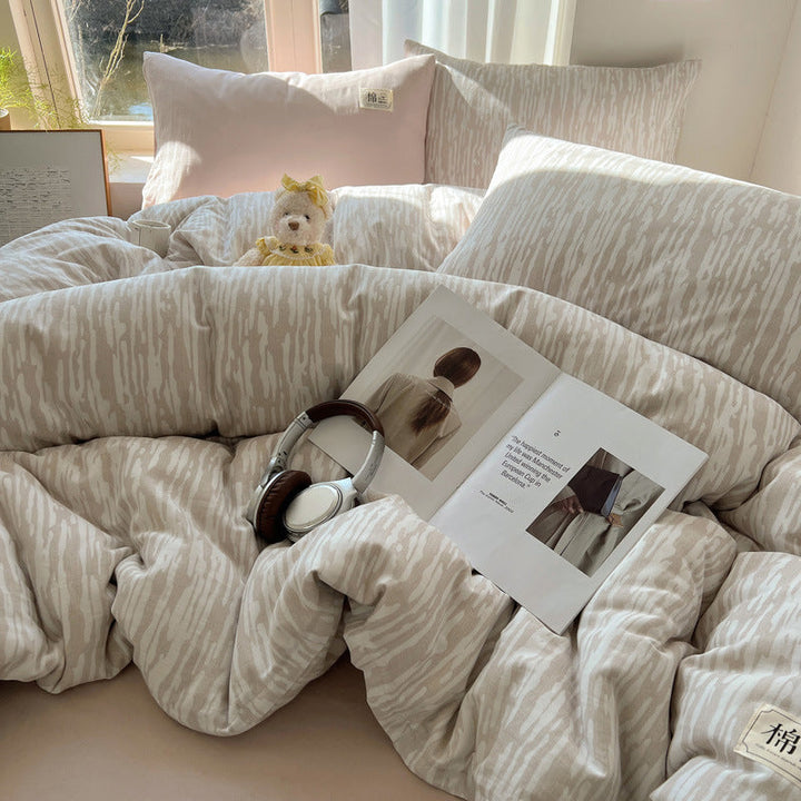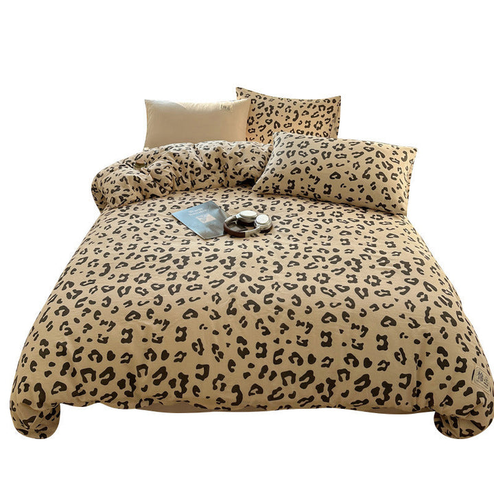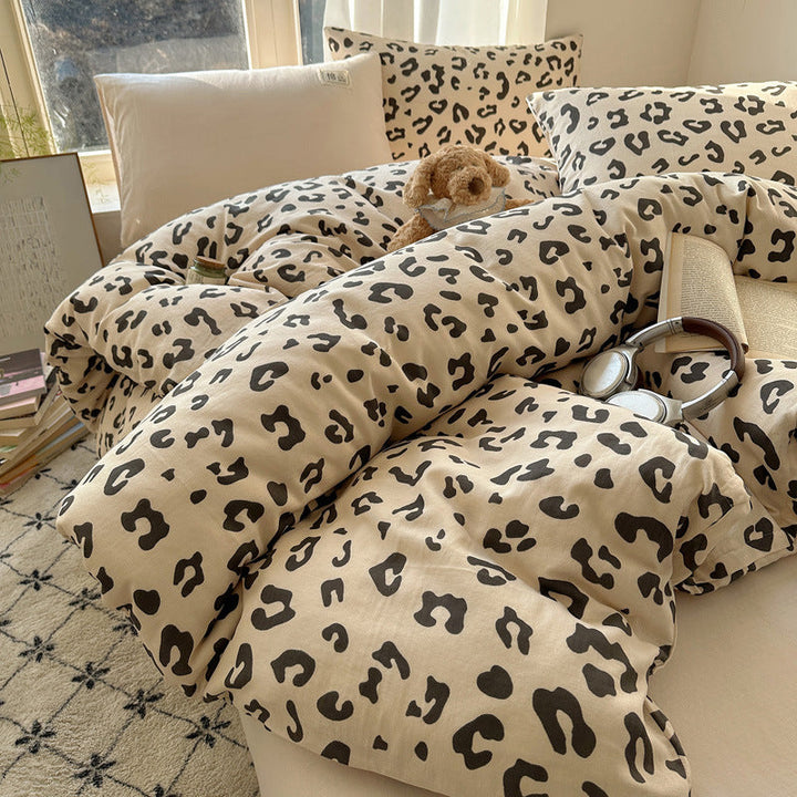 ins leopard print cotton double-layer yarn bed four-piece cotton quilt cover bed sheet bed hat skin-friendly bedding dormitory wholesale