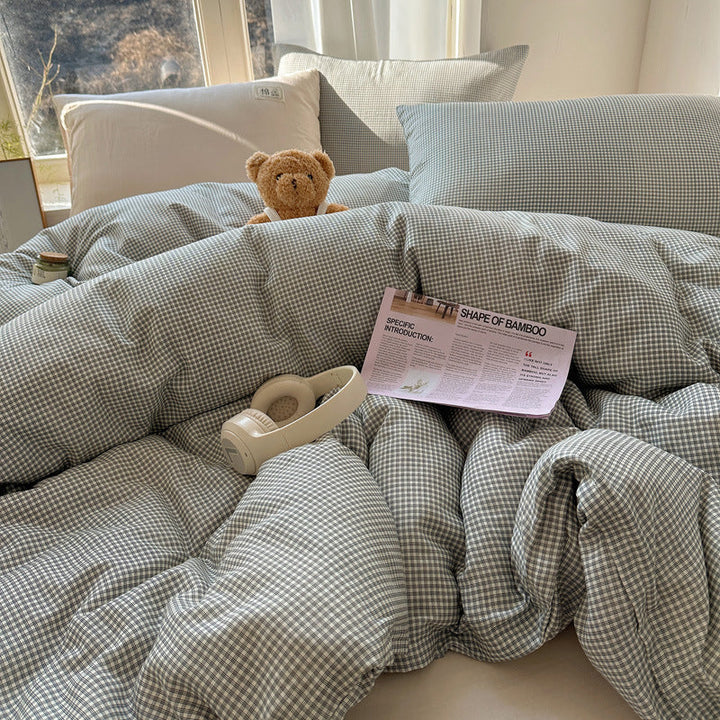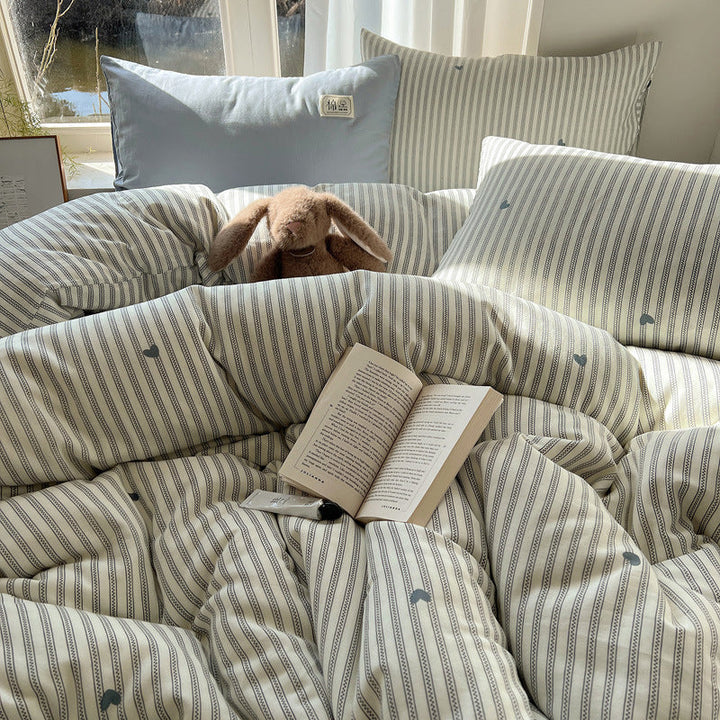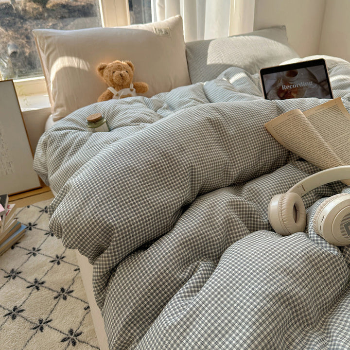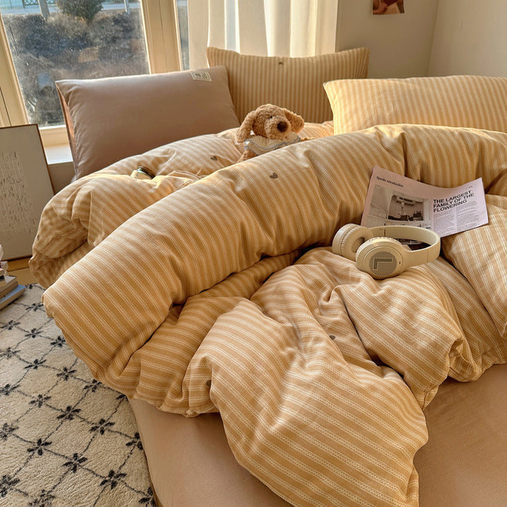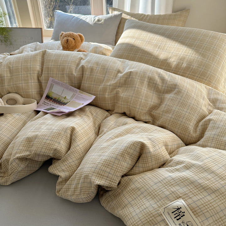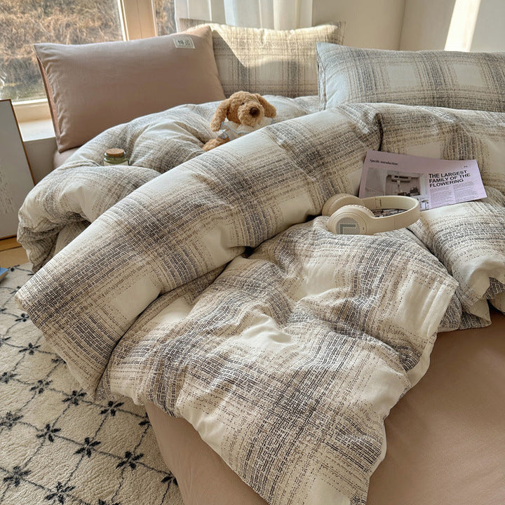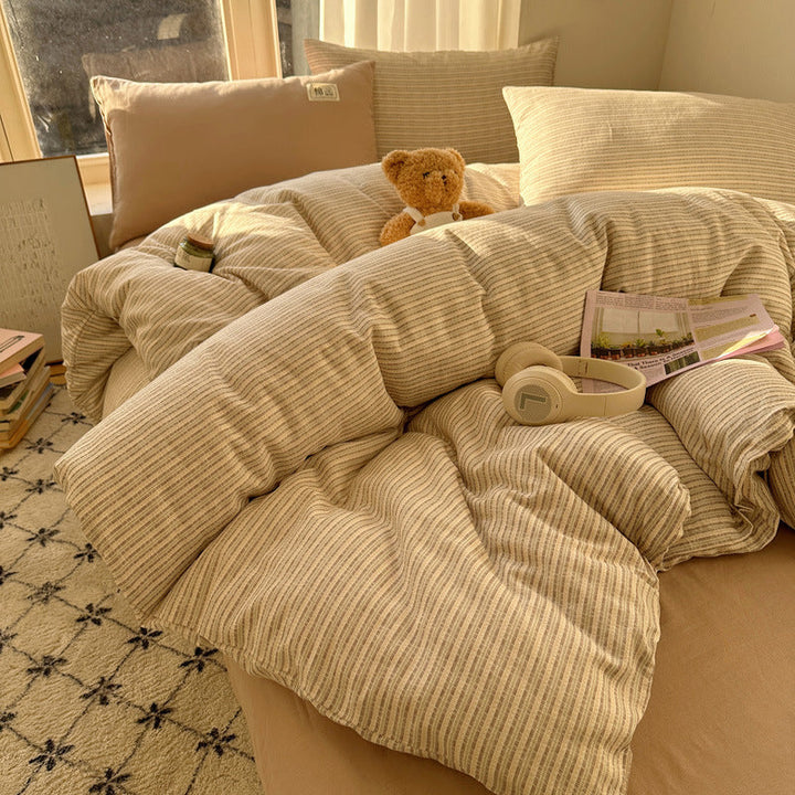 ins leopard print cotton double-layer yarn bed four-piece cotton quilt cover bed sheet bed hat skin-friendly bedding dormitory wholesale
