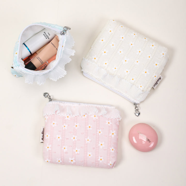 ins literary small fresh cosmetic bag small daisy flower sweet sister girl portable cosmetics sample storage bag
