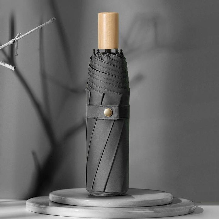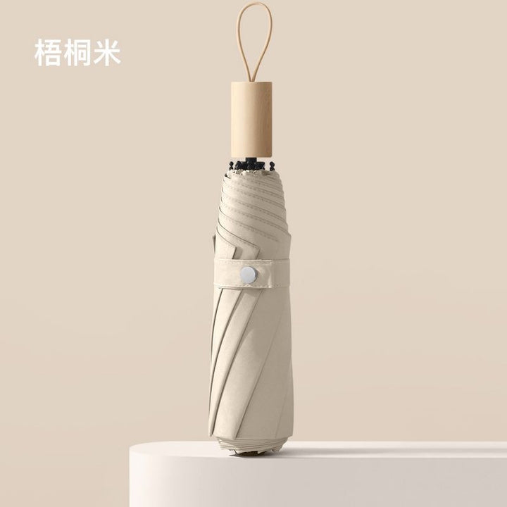 ins simple solid wood handle vinyl sunscreen parasol wholesale weather and rain folding advertising umbrella umbrella customization