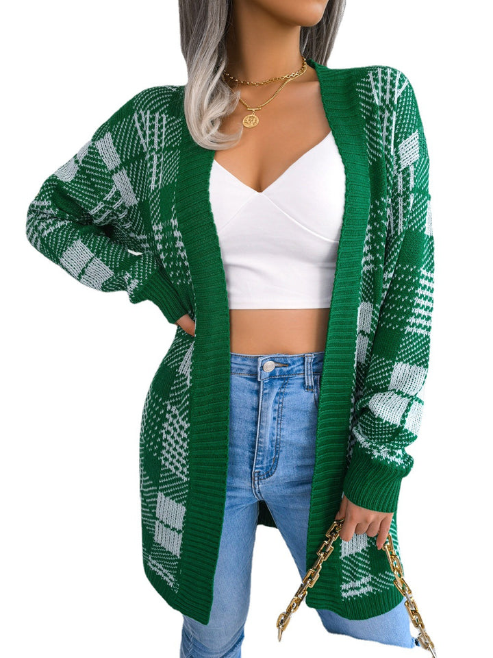 ins style European and American autumn and winter plaid straps lantern sleeves casual cardigan sweater jacket, women's clothing