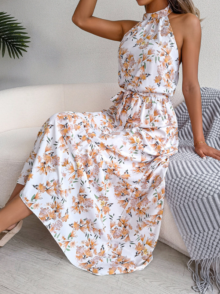 ins style European and American neck strap halter floral dress irregular holiday dress, independent station women's clothing