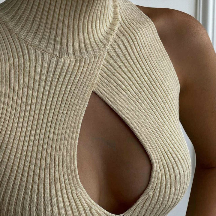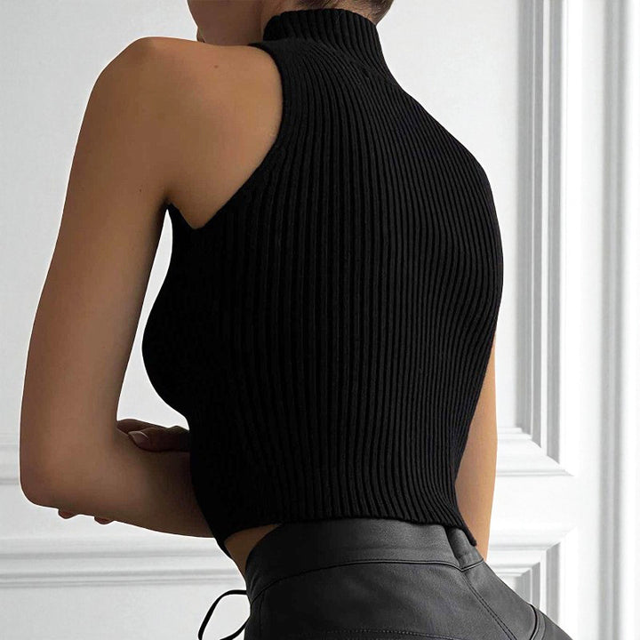 ins style European and American women's top 2025 new sexy hollow sleeveless vest turtleneck bottoming knitted sweater