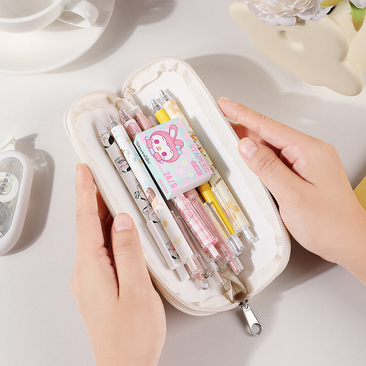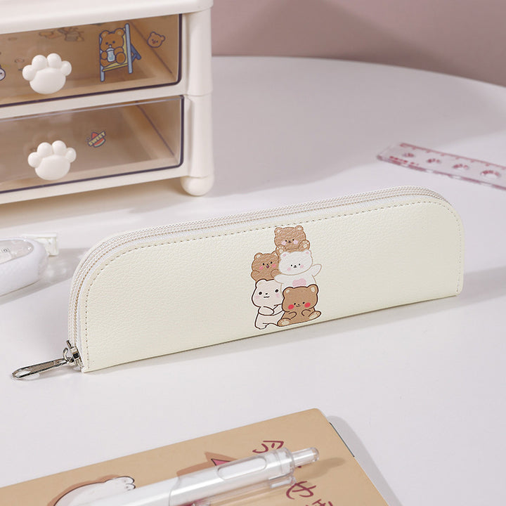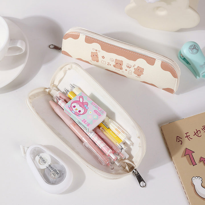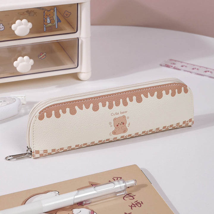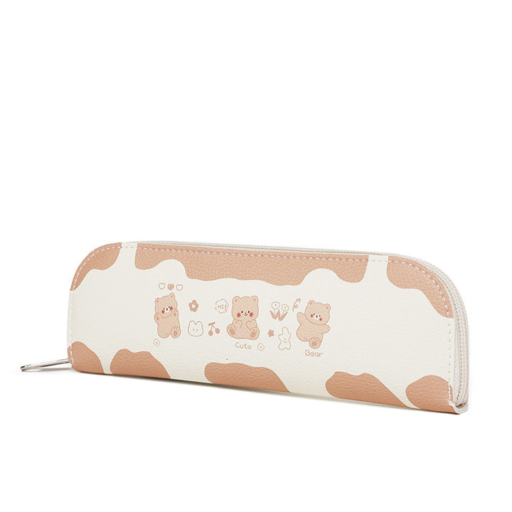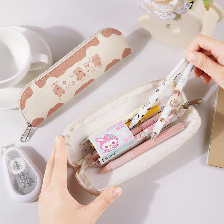 ins wind girl heart cartoon student stationery bag PU leather zipper bag storage bag rectangular pencil bag cosmetic bag