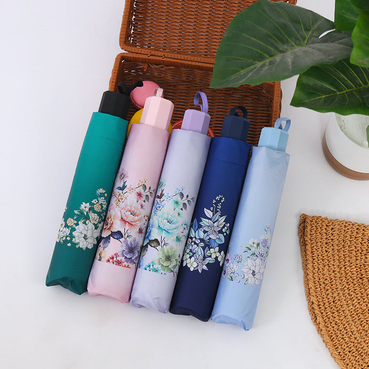 ins wind literary and simple manual umbrella retro flower parasol anti-ultraviolet umbrella female sunscreen sun umbrella