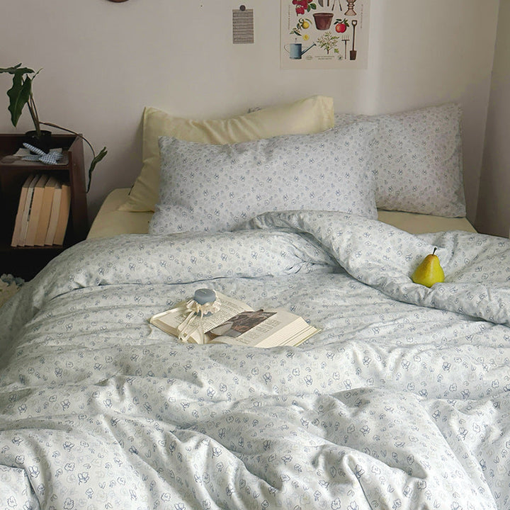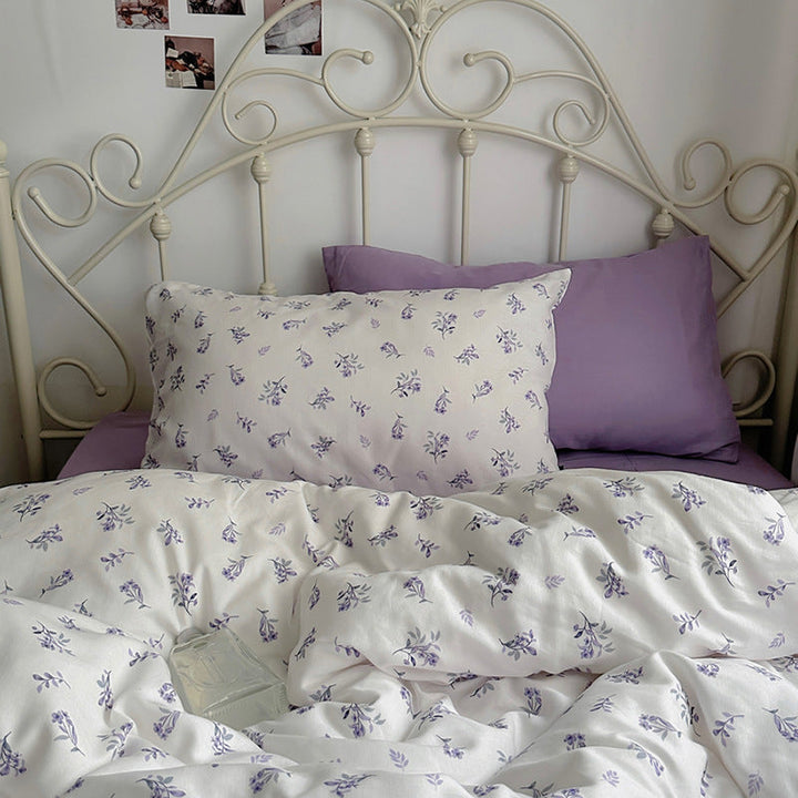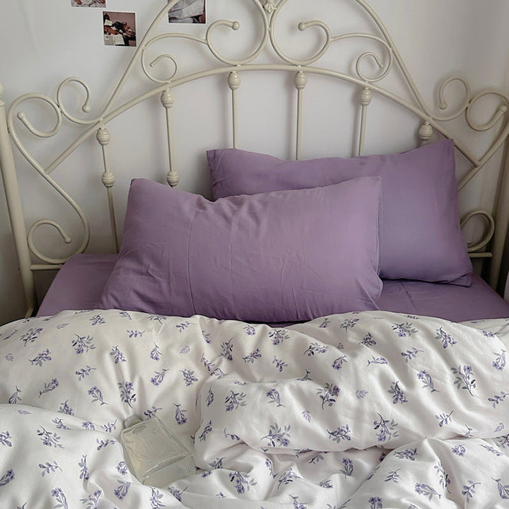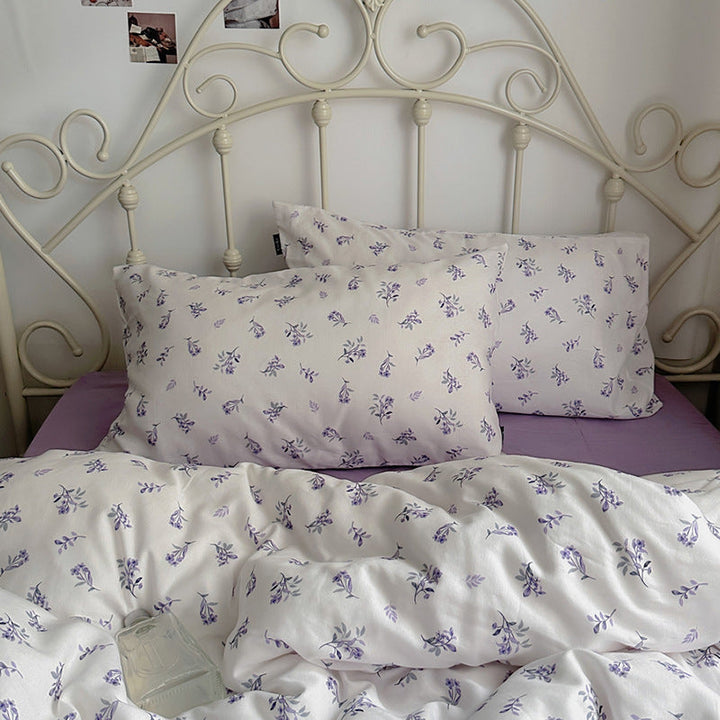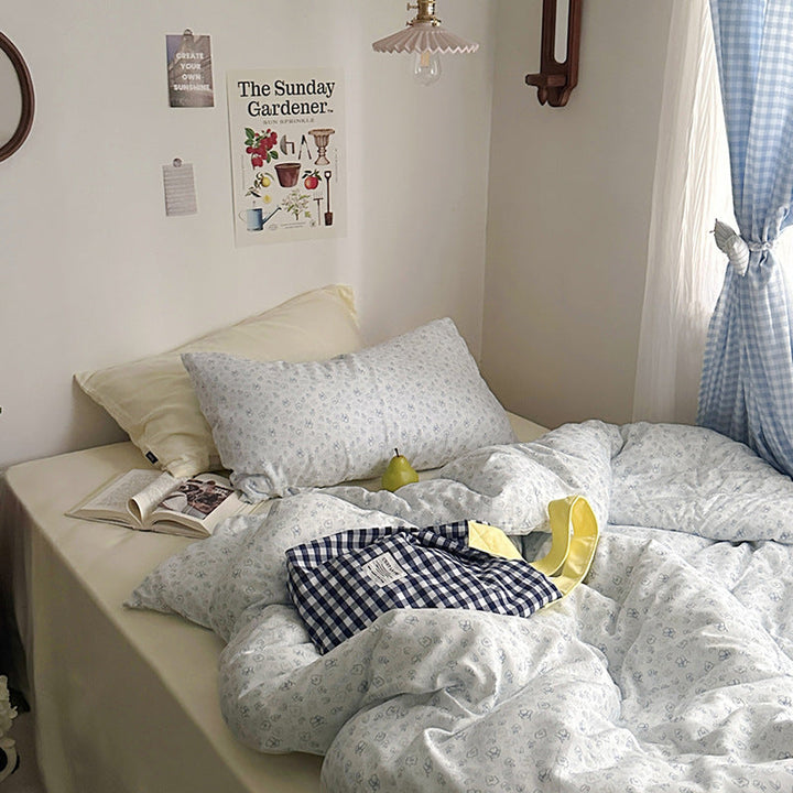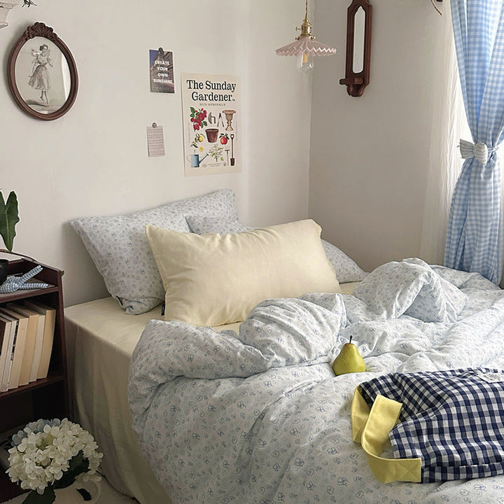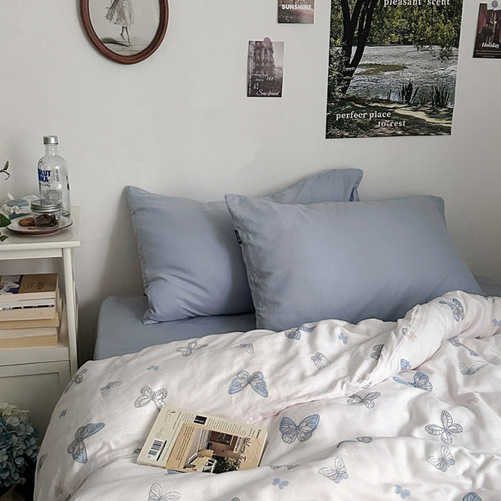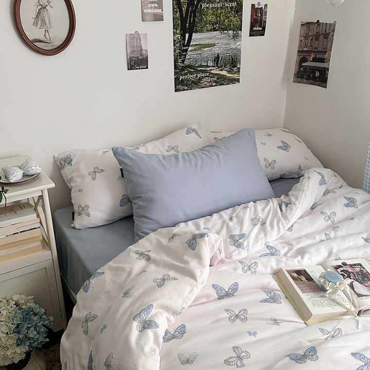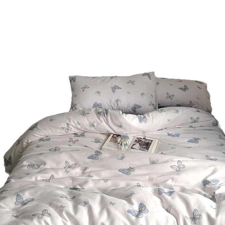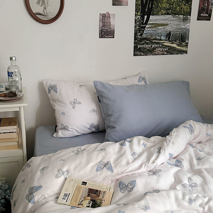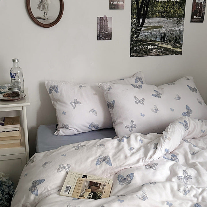 ins wind pure cotton double-layer yarn butterfly floral four-piece set 100 cotton bed sheet quilt cover student dormitory three-piece set 4