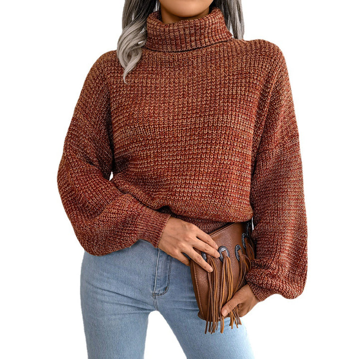 ins wind real shot 2025 autumn and winter European and American mixed-color lanterns long-sleeved turtleneck knitted sweater, women's clothing