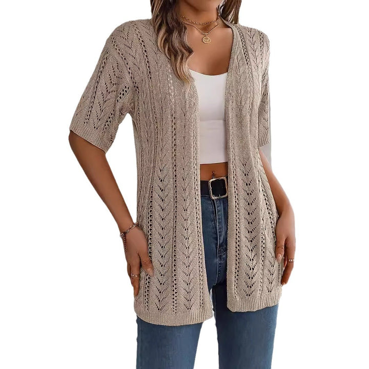 ins wind real shot 2025 summer hollow short-sleeved knitted cardigan vacation sunscreen shirt, women's clothing
