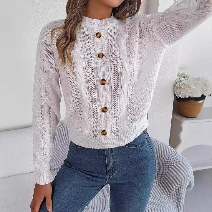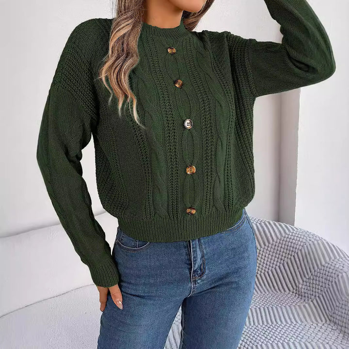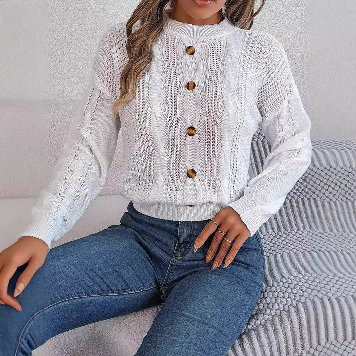 ins wind real shot autumn and winter casual solid color button twist long-sleeved pullover sweater, independent station European and American wome...