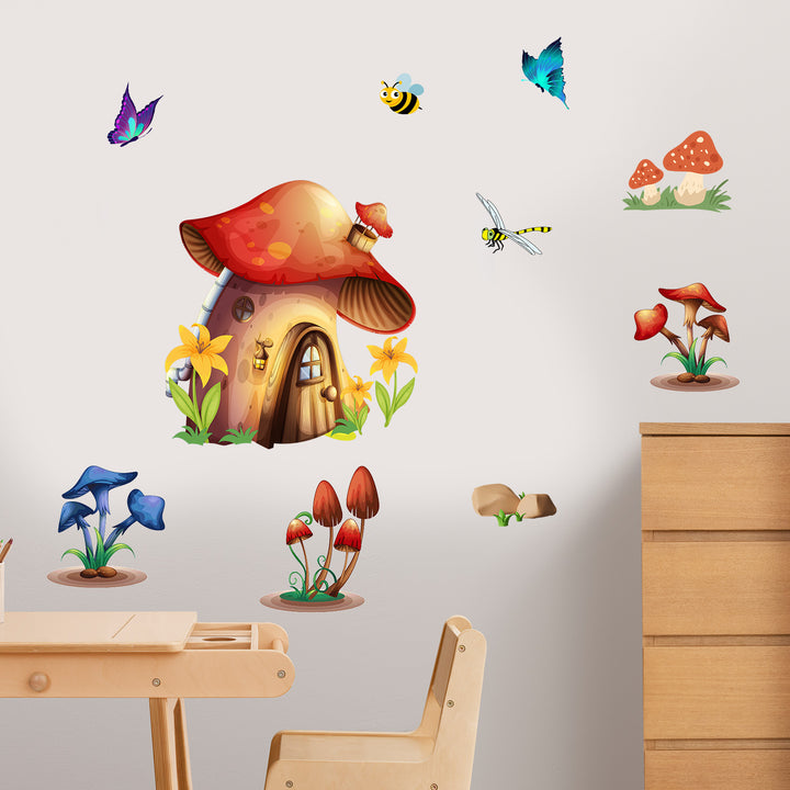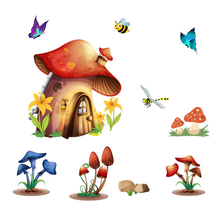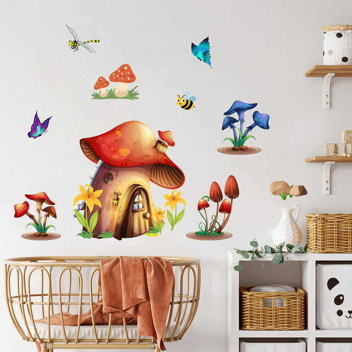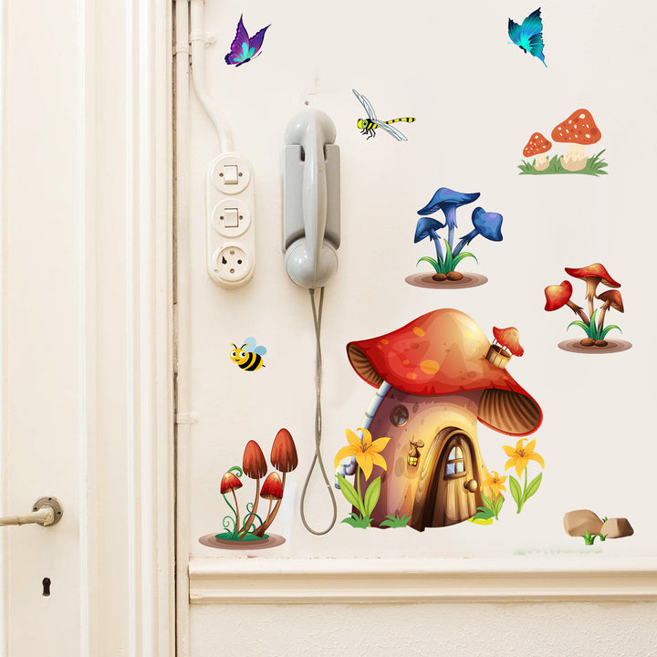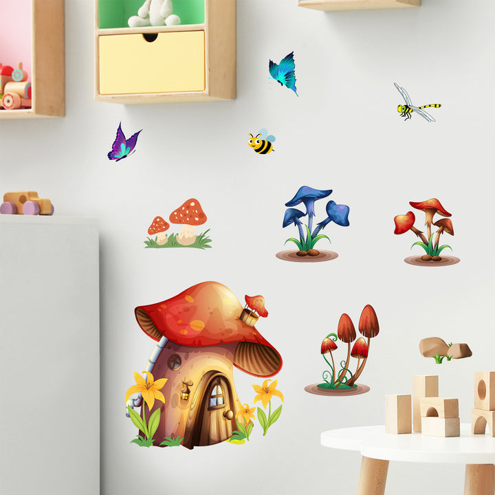 Insect Mushroom Mushroom House Wall Sticker Cross-border Foreign Trade Living Room Bedroom D...