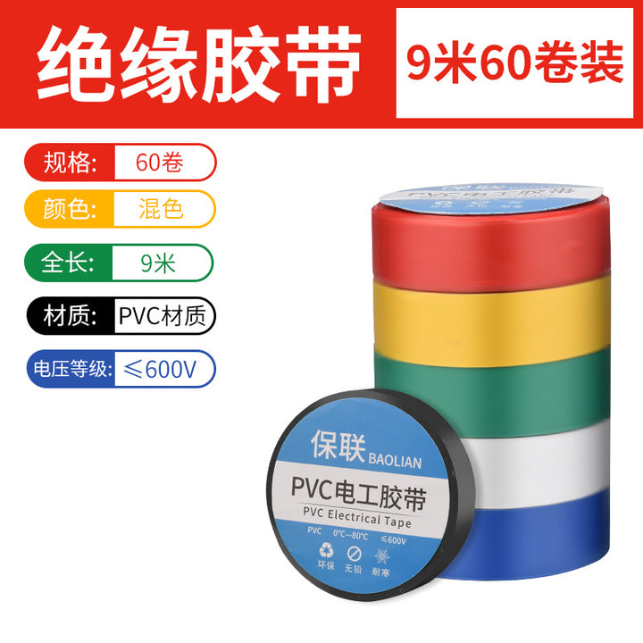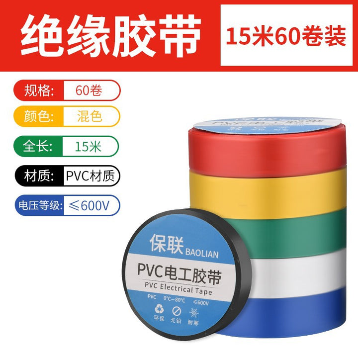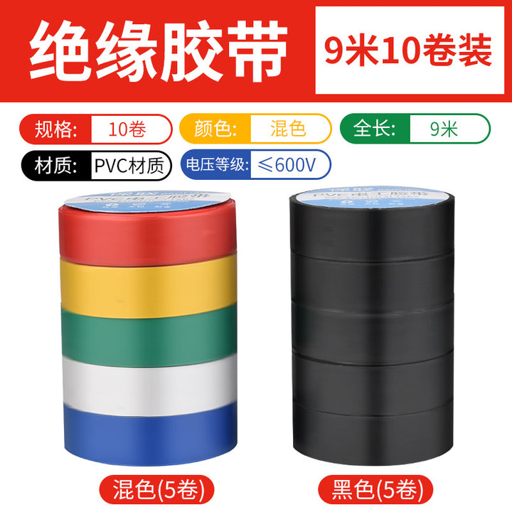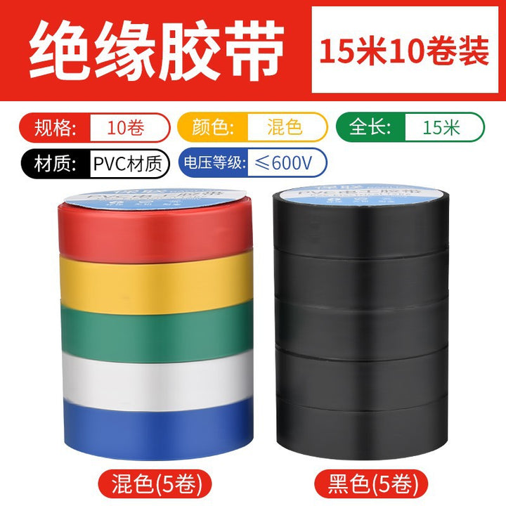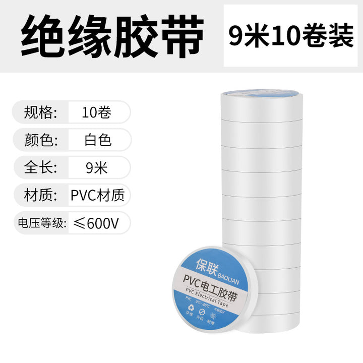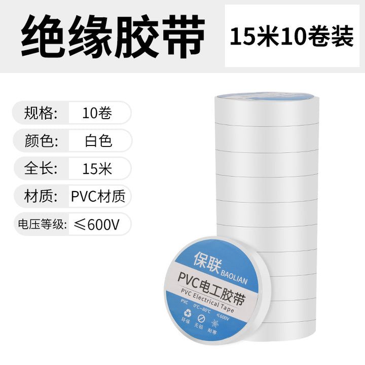 Insulating electrical tape Waterproof PVC flame retardant wear resistant high temperature resistant black white wire electrical super sticky tape