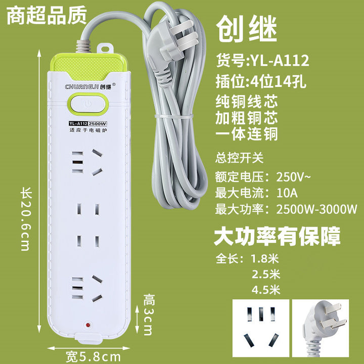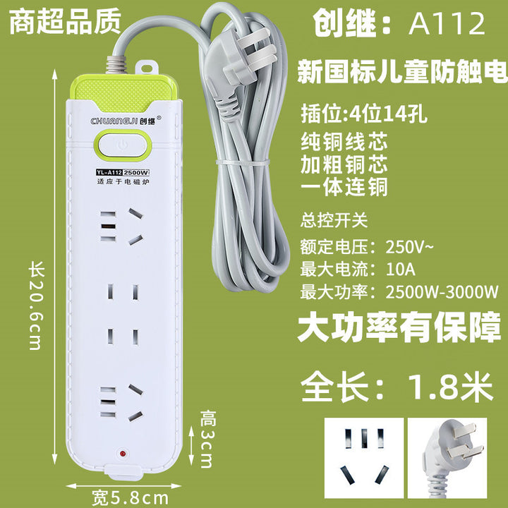 Intelligent power strip switch plug-in board 14 holes new national standard high-power induction cooker suitable for wholesale with wire socket safety