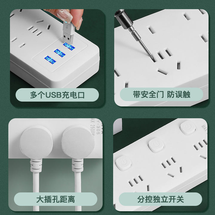 Intelligent socket household usb five-hole switch socket high power strip desktop multi-function socket board