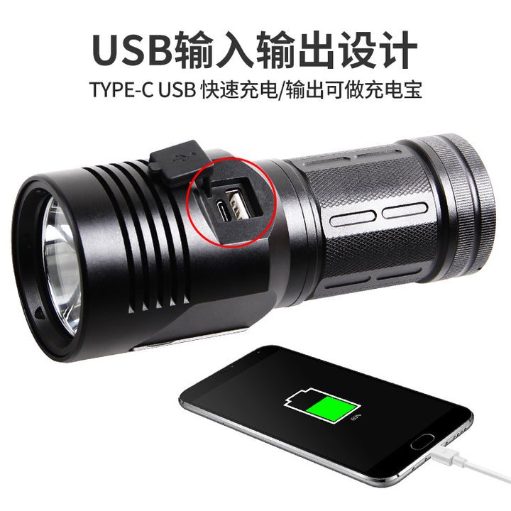Internet celebrity big steel cannon strong light flashlight charging bright, portable multi-function white laser led work lighting flashlight