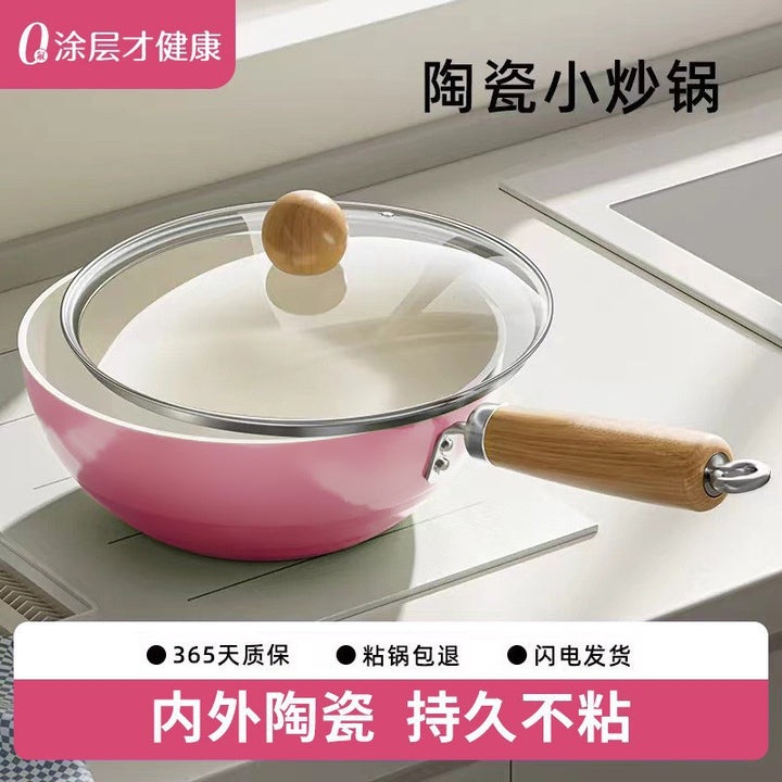 Internet celebrity ceramic pot small wok non-stick pan one person food small pot wok pan indu...